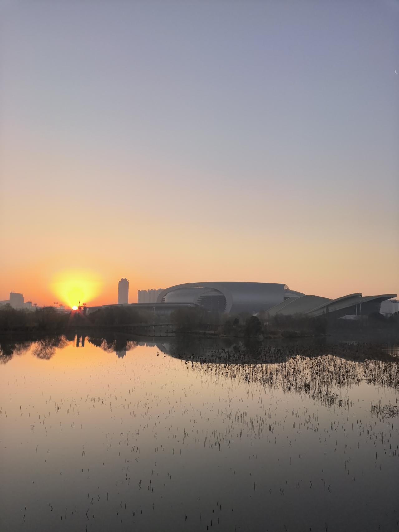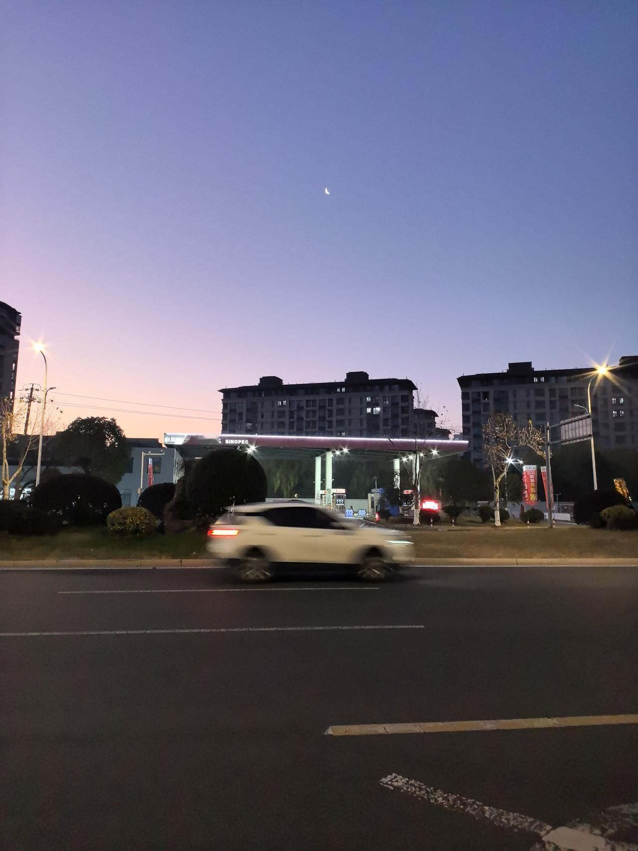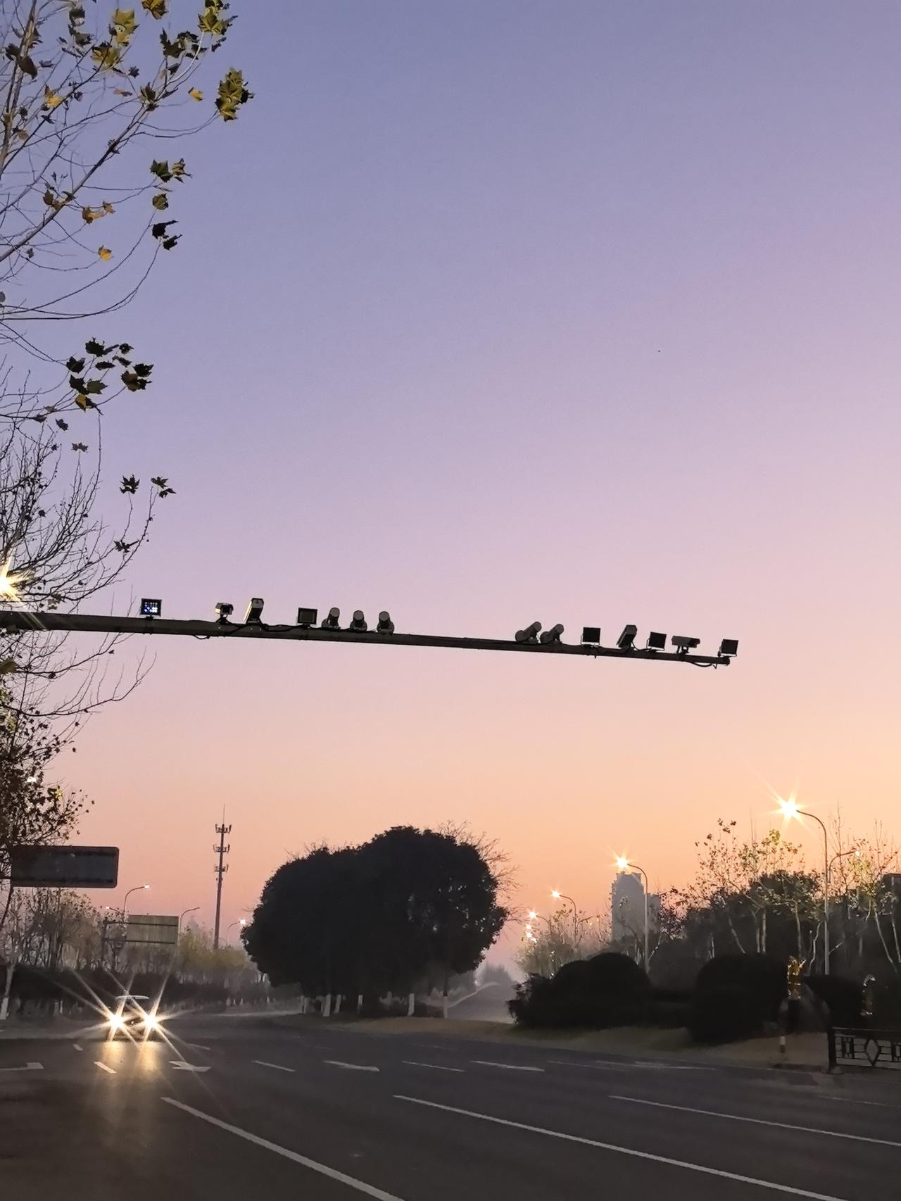 提前半小时出门,你会看到什么? 三九第七天,浙江湖州,提前半小时出门。 遇见一轮弯月,一路路灯相伴,还有新的一天的第一缕阳光…… 绿色出行!美美哒!