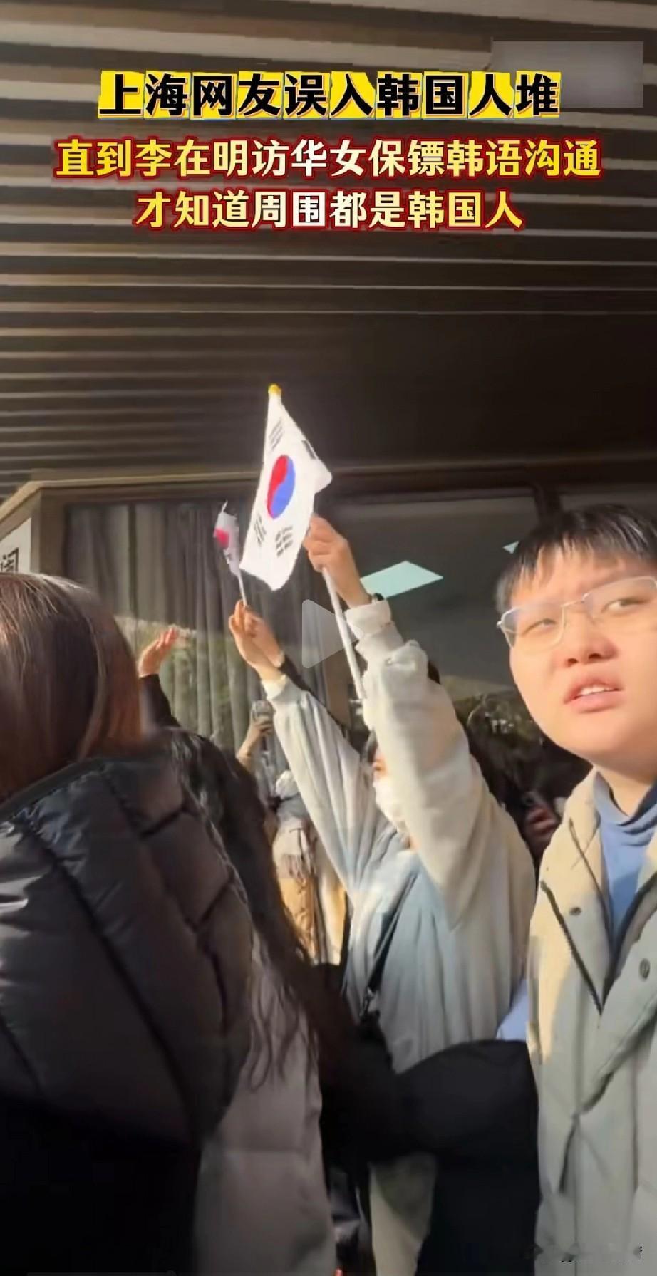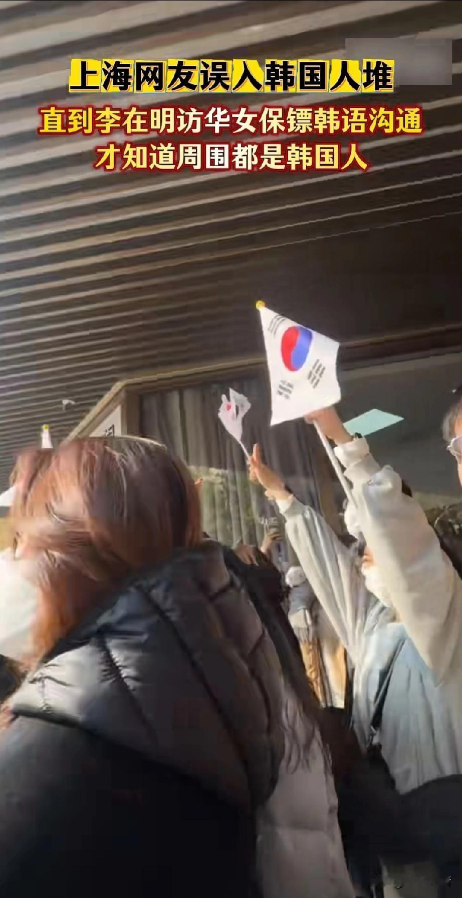 原来上海也有这么多韩国人, 上海不愧是一座包容性的城市, 一上海小哥误入韩国人堆, 他本来是想看看热闹, 看到了有一群人在那儿站着, 最近还有女保镖维持秩序, 本着凑热闹的心思, 他就挤进了人堆, 结果直到女保镖开口和大家沟通, 他才发觉自己误入了韩国人堆, 结果周围都是韩国人, 这个时候才有人把韩国国旗举了出来, 他觉得这事比较搞笑, 于是就把手机拿出来拍摄, 周围的韩国人丝毫没有意识到他是中国人,因为他压根就没有开口说话, 没想到这段视频居然火了, 有网友表示韩国女保镖挺漂亮的, 有网友表示你小子可以做卧底了! 看来还是中国比较安全, 连欢迎人群都不检查, 这要是在国外, 去欢迎的人群可都是精心挑选的, 哪会让你有机会混进去? 大家觉得上海小伙混入韩国人堆这事好玩吗? 上海 上海外国人 上海韩国游客 韩国人游上海 外滩韩国人