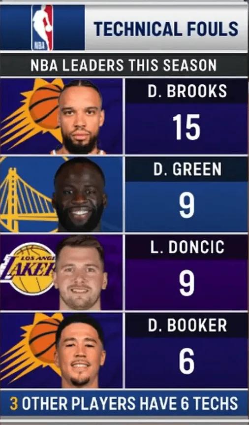 狄龙球场恶汉实锤了! 这个赛季,他吃到了15个技术犯规,联盟第一,再有一次将被禁赛。(累计16次)。 今天,太阳打热火,狄龙附加动作推倒鲍威尔,双方险些发生冲突。 狄龙又被判了一个。 有意思的是,太阳球队老大布克都被他带偏了,布克也排到了第四,这个赛季有六个恶意犯规。 追梦,东77 ,9个并列第二。 追梦完全能理解,菜嘛,没办法。 东契奇呢?主要是,因为他喜欢摊手,抱怨,找犯规。
