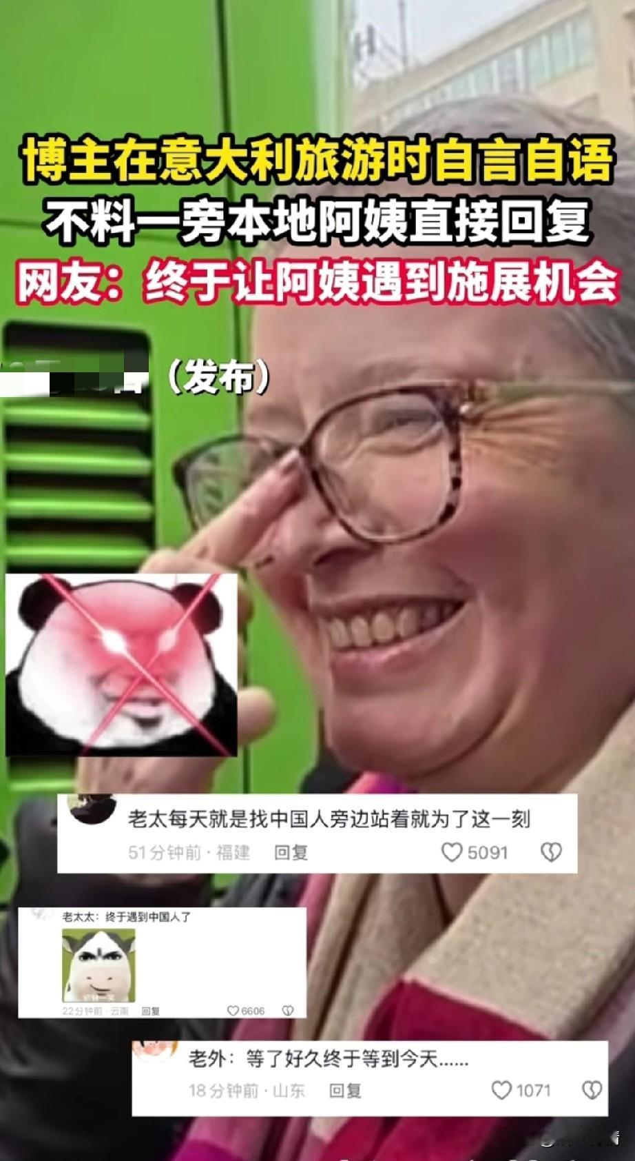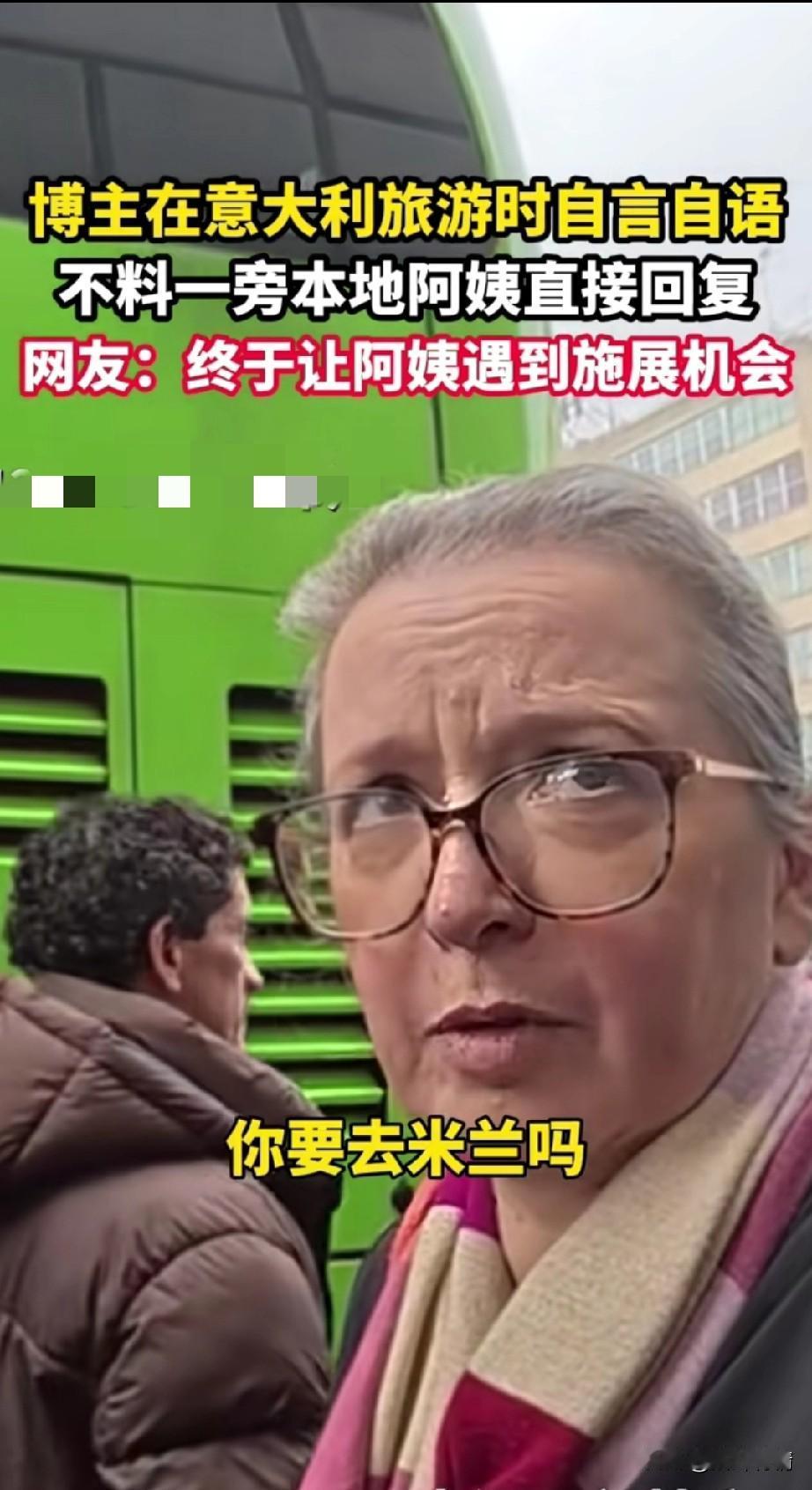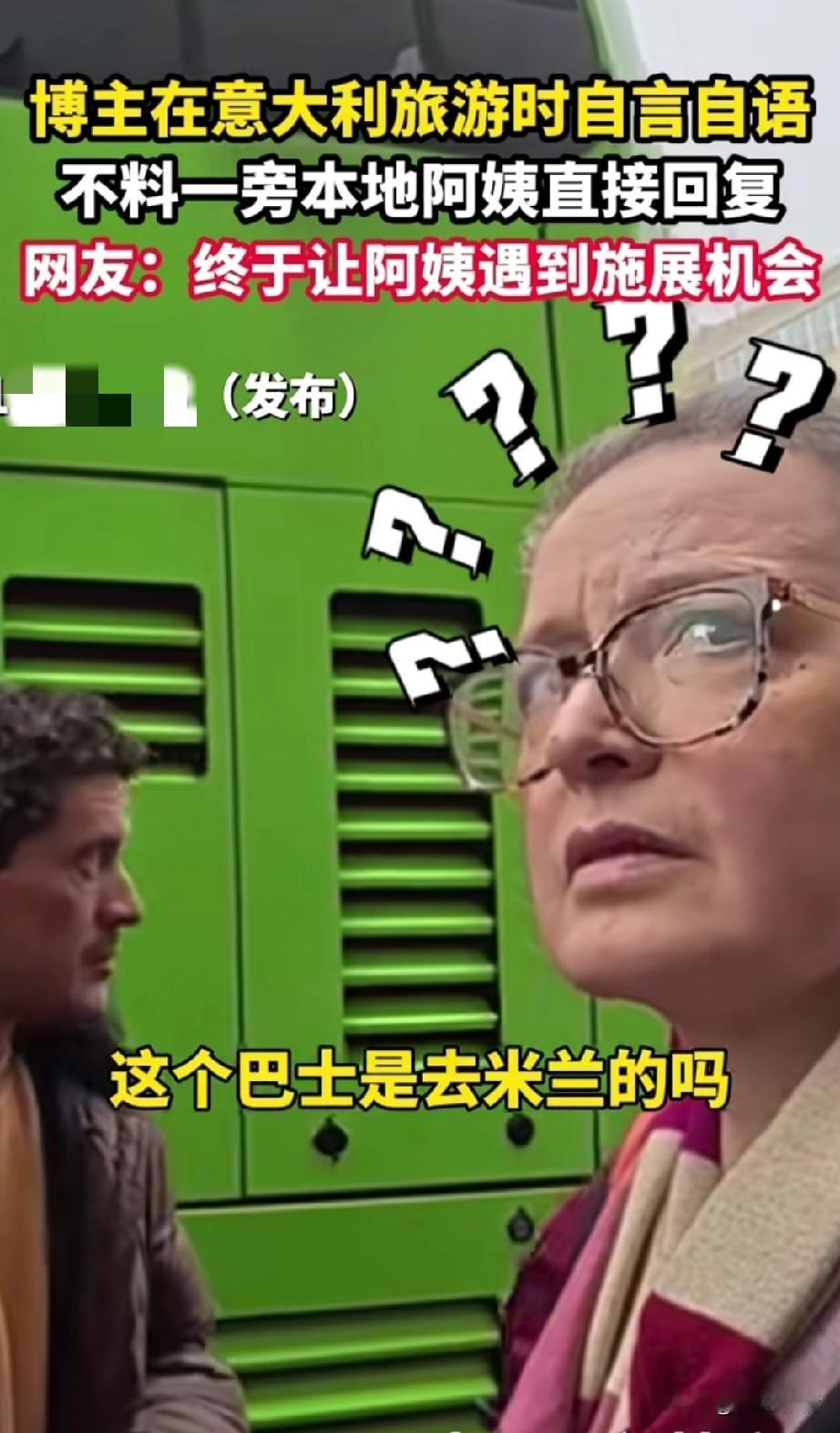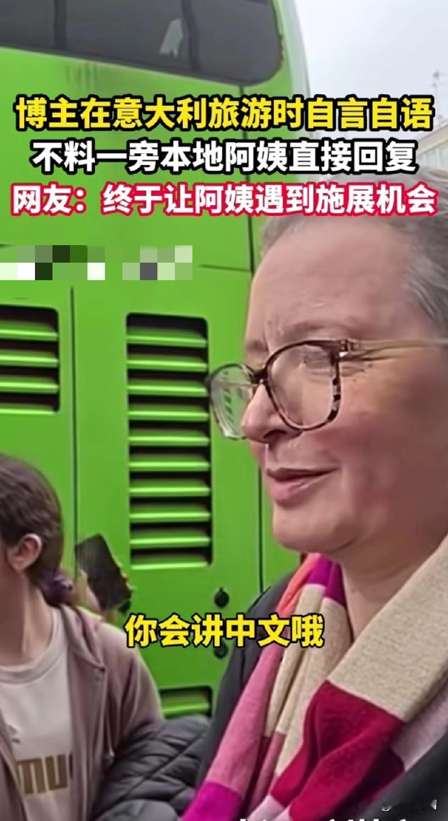 原来中文在国外已经不算是加密语言, 低至几岁儿童上至七八十岁的老太, 她们居然都会说中文了, 博主在意大利的车站等车, 看到了绿色的大巴, 于是自言自语起来, 这个巴士是去米兰的吗? 好像是绿色的! 旁边的一位老太太, 居然直接用中文告诉他对的, 但这个不是去米兰的? 你要去米兰吗? 几句话彻底将博主震惊, 他万万没想到在意大利, 年龄很大的老太太居然会说中文, 博主惊讶的说道你居然会说中文, 老太太扶了扶眼镜,笑的乐开了花, 原来老外都在学中文, 这实在是不敢想象, 中文居然传播这么广, 意大利的老太太居然会讲中文, 实在是有点儿夸张了, 网友表示终于让阿姨遇到施展的机会了, 大家觉得意大利的老阿姨为啥会中文? 外国友人说中文 洋人说中文 老外也懂中文 欧洲人学习中文 国外小孩学中文