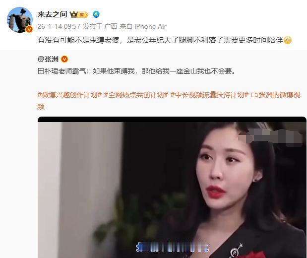 此前,王石妻子田朴珺在接受采访时表示:“无论遇到什么样的人,如果他束缚我,那他给我一座金山我也不会要。” 对此,来总(王高飞)风趣评论道:“有没有一种可能,不是束缚妻子,而是丈夫年纪大了腿脚不便,需要更多时间陪伴呢?”[抠鼻] 哈哈哈 来总太调皮了,不愧是渣浪总舵主。[捂脸][大笑]