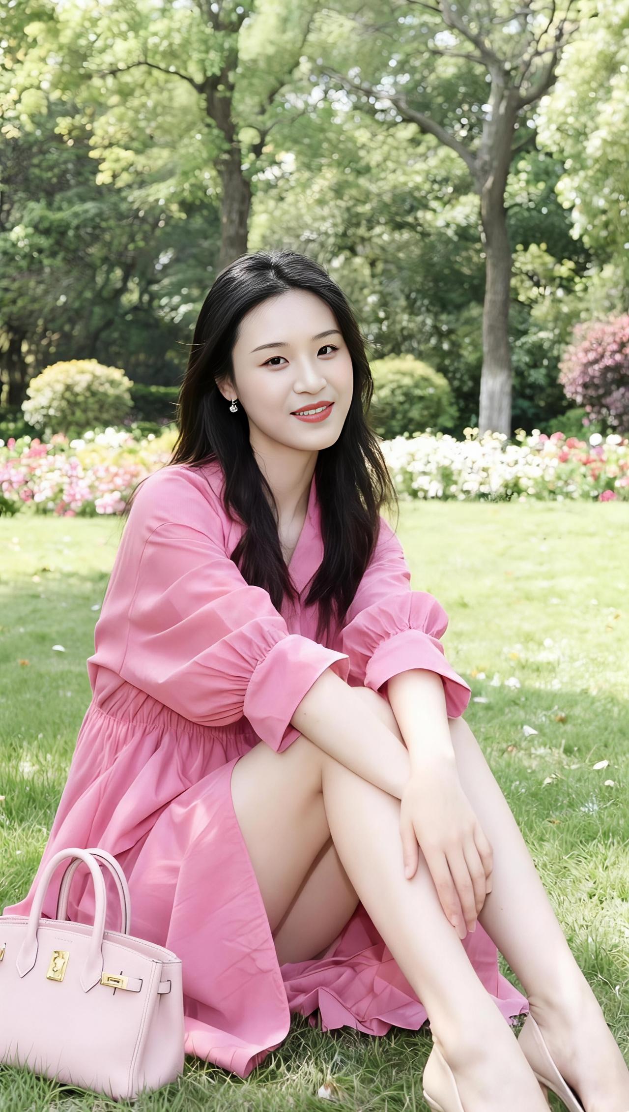 鹧鸪天·粉裙佳人游园 软草晴光衬粉裳, 风牵裙袂漾幽香。 眉弯笑靥凝春色, 发绾流云映晓阳。 依碧树, 傍花廊, 手提轻袋意悠扬。 游园一晌韶光好, 笑靥如霞落鬓旁。 浣溪沙·春园倩影 粉袂轻扬坐绿茵, 明霞偷染笑眉颦。 发丝垂缕惹风亲。 手挽香包凝秀色, 身依芳树醉芳辰。 春光都作眼前人。