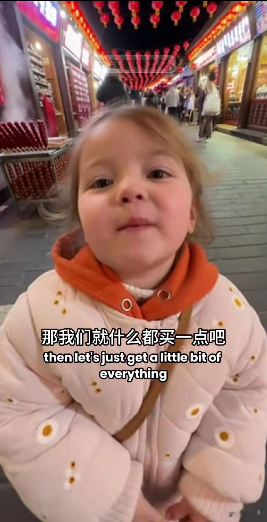 一老外带着自己的女儿来到中国的商业街,看到古香古色的商业街, 他的女儿非常的开心, 老伟对他的女儿说,看是糖果, 可他的女儿却将目光锁定在了装饰品上,还对她爸爸说还有那边的小玩具, 然后搓着手对爸爸说, 那我们多买一点吧? 然后嘻嘻的笑了, 笑的那么甜美, 发现小孩子的英语真的很标准, 而且语速非常的慢, 听不懂英语的我居然听懂了, 感觉就应该让外国小朋友来当外教, 这样大家的口语就都能学好了, 因为外国小孩的口语真的非常的标准, 人类幼崽就是比较好玩, 因为她们的笑容天真可爱, 你能感觉到她们的纯真, 大家觉得这个老外小女孩可爱吗? 每人推荐一个旅行目的地 萌娃老外 老外女儿 老外来华购物