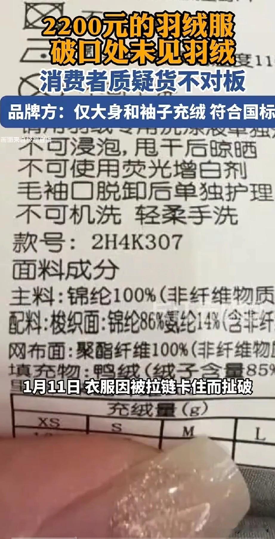 杭州严女士在店里面花2000元买的羽绒服,袖口和衣领居然都是棉的, 要不是她不小心拉拉链儿, 把衣领给弄破了, 还真的没有发现这地方居然不是羽绒服,这可是在店铺买的, 而且还是品牌的羽绒服, 有记者致电了官方客服, 客服表示仅大身和袖子充绒, 其他地方基本都是棉的, 并且这符合国家标准! 这件事爆出来之后, 大家不禁要对羽绒服另眼相看, 看来前年羽绒服作假事件, 并没有让厂商吸取教训, 如今开始偷工减料了, 要不是杭州这位女士发现, 大家根本不知道现在的羽绒服居然都这样,当地的监管局也表示, 如果情况属实,牌子上没有标注, 那就涉嫌未按照规定标注, 现在的羽绒服不仅贵了, 而且用料也不如以前的实在, 怪不得用旧的羽绒服制作新的羽绒服成为了潮流,虽然需要花个一两百, 但是那是真的暖和, 这就是现在羽绒服不暖和的原因吧! 大家对于羽绒服衣领和袖口都是压棉这事怎么? 杭州 羽绒服事件 羽绒服被曝掺假 辨别假羽绒服 羽绒服伪劣事件 羽绒服假绒乱象