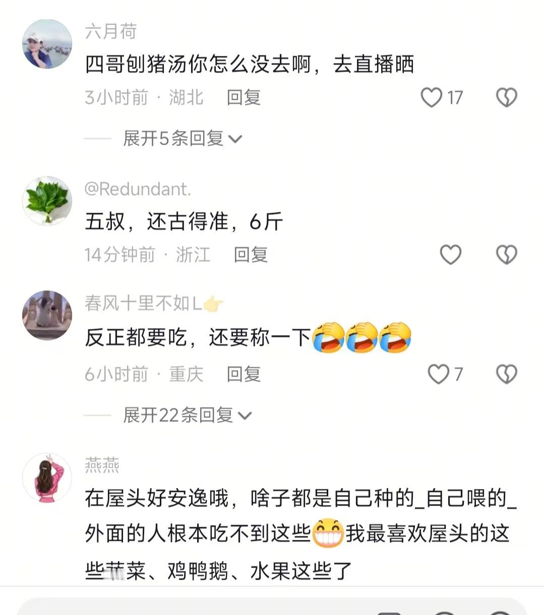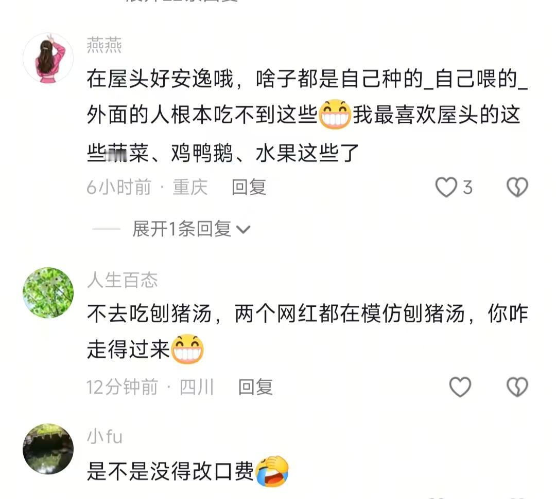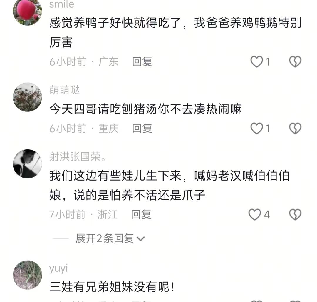 徐三娃这个人 完全不经扒 因为一扒你就会发现他竟然是个炒菜的高手,炒菜真的很香 刷到徐三娃的视频,真的笑不活了!丈母娘突然拎着一只鸭子找上门,说这是家里最后一只存货,专门送过来打火锅。说实话,本来以为就是普通送菜,结果听她说为了防止鸭子跑掉,足足关了三天,谁看了不懵啊!徐三娃站在门口喊五叔五婶(就是他爸妈)的时候,声音都有点飘,生怕鸭子突然扑腾起来。爸妈出来见到丈母娘,立马热情握手,五叔还特意找了秤来称,一称6斤1两。丈母娘直叹气,说瘦了一斤,关三天不吃不喝的。旁边有人插了句,说这鸭子也是有灵性的,知道大限将至就没心思吃饭了,现在想想,这话好像还真有点道理。 本来徐三娃寻思着就按丈母娘说的打火锅,结果进了厨房突然改主意,想着做两道菜试试。说真的,他之前炖鸭炖糊过一次,那次把锅都烧黑了,郁闷得三天没碰厨房,这次本来也怕翻车,但想着食材这么新鲜,不试试爆炒太可惜了。然后他就倒油下锅,先把鸭肉扔进去翻炒,接着加泡菜、萝卜、青椒辣椒和蒜子,最后怼上酱料一顿猛炒,炒完一闻,哎呀妈呀,太香了!给力!剩下的一半鸭肉他扔进锅里炖汤,炖了快一个小时,掀开锅盖的那一刻,他直接喊出声:太棒了! 两道鸭肉菜上桌,徐三娃、爸妈、丈母娘四个人围坐一桌开吃,那氛围,巴适得板!本来以为这事儿就这么平平淡淡过去了,结果他随手发了个视频,评论区直接炸锅。有网友追着问:“四哥刨猪汤你咋没去啊?不去直播太亏了!”还有人羡慕:“屋头的菜就是香,外面根本吃不到!”最让人哭笑不得的是,有人盯着他喊爸妈“五叔五婶”不放,连发好几个“不是吧?”“真的假的?”问他为啥这么叫。他只能老实回复:“别扭,就是习惯这么喊了。” 其实评论区吵得热火朝天的时候,他还刷到一条评论,说“这就是因缘际会,鸭子的使命就是成全这顿饭的热闹”,他当时还愣了一下,后来想想,随便吧,网友开心就好。不过有一说一,谁能想到一顿鸭肉能引发这么多讨论啊,之前发的视频都没这待遇,简直是意外之喜。 总之,这顿饭看得人眼馋,也让人悟到了一点小门道。我想说的是,以后家里有新鲜鸭肉,别只想着炖火锅,分一半出来爆炒,香到邻居来敲门!徐三娃这厨房杀手都能搞掂,你们肯定没问题!你说是吧!