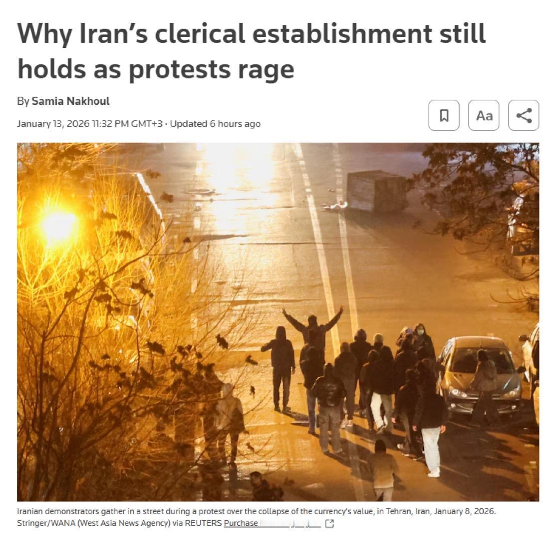 路透社: 尽管伊朗全国范围内爆发了数周的抗议经济崩溃的示威活动,但伊朗统治集团高层并未出现任何瓦解迹象。 分析人士称,关键原因是该政权根深蒂固的安全机构——由革命卫队和巴斯基民兵领导——一直保持忠诚和完整。