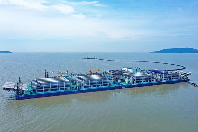 太湖深处,一座由多艘功能船体组成的“移动治水堡垒”正开足马力持续作业。在船体末端,大块大块形似华夫饼的黑色泥块顺着传送带掉落至相连的运送船上,就在两个小时前它们还是沉在太湖湖底的泥浆。