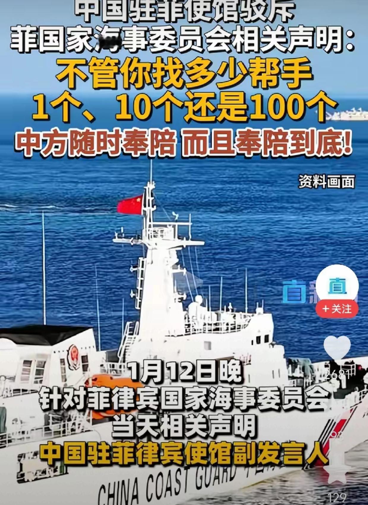 中方说了,随时都能接着奉陪,而且会一直奉陪下去!面对菲律宾一次次的挑衅,咱们已经忍到了头,宽容也给够了,这可能就是给他们的最后警告了。 菲律宾可别再糊涂了,不然到时候可别说咱们以大欺小。自己做错的事,总得付出代价。咱们的好脾气已经用完了,就希望他们能好自为之。 其实谁都不想把事情闹大,可你一再越过底线,那也不能怪别人不客气。真要闹到收不了场,吃亏的还是他们自己。毕竟实力摆在那儿,非要硬碰硬,最后只能是自讨苦吃。还是赶紧回头,别再往前冲了,这才是聪明的做法。菲律宾风波 菲律宾当前局势