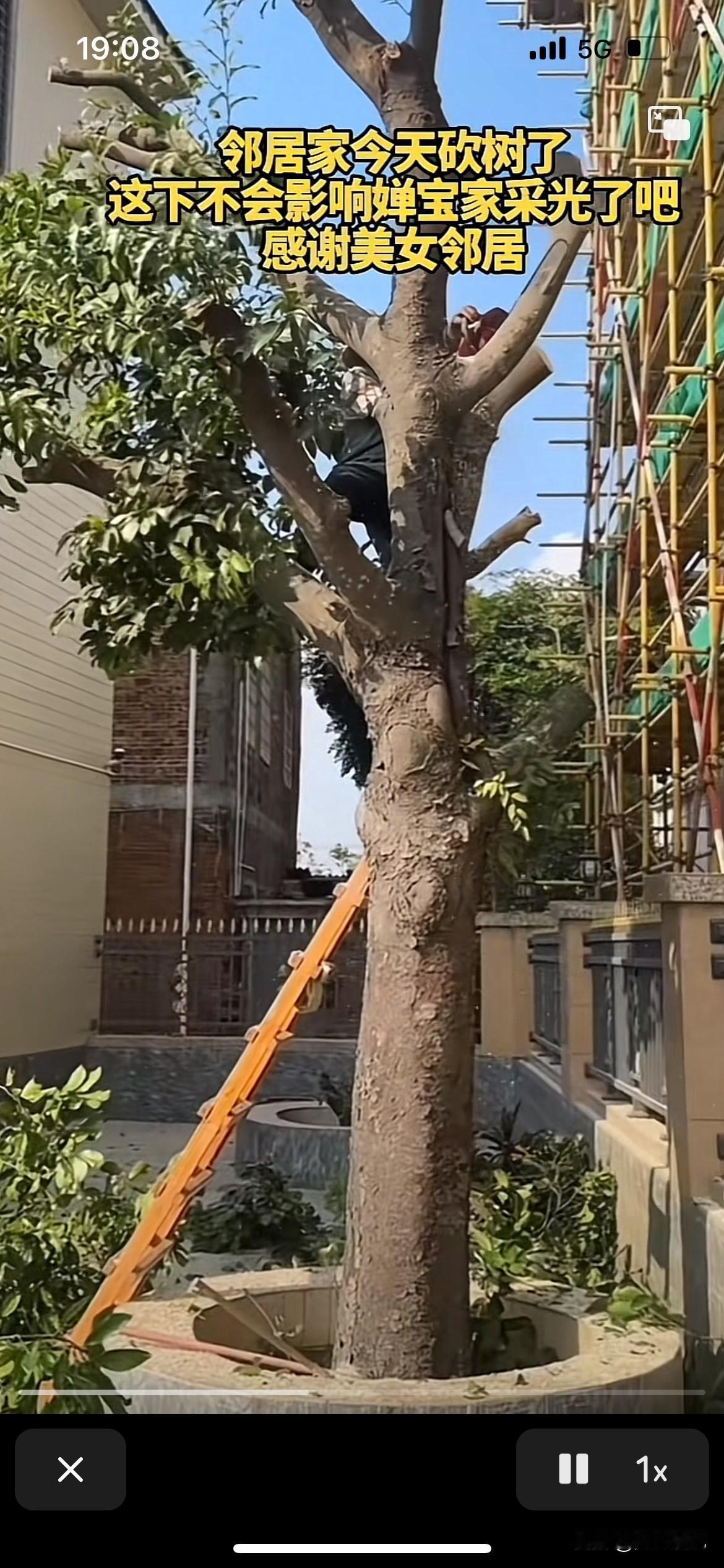 全红婵新家旁边的树已经被砍得差不多了,在很多网友的压制下,邻居还是屈服了,赶紧找来师傅就砍掉,不过邻居的树超过自己的围墙外挡住别人的房子,应该把树枝切掉,在农村要邻里和气的。 也许全红婵就是幸运儿人缘好,遇到人家邻居也是这么好,不用说都自己修,树在别人家里,为邻居修枝都是情意,何必道德绑架人家拔根而起。 没一个人骂,邻居家一直没有人回来住,现在人家女儿回来了说修就行动了。