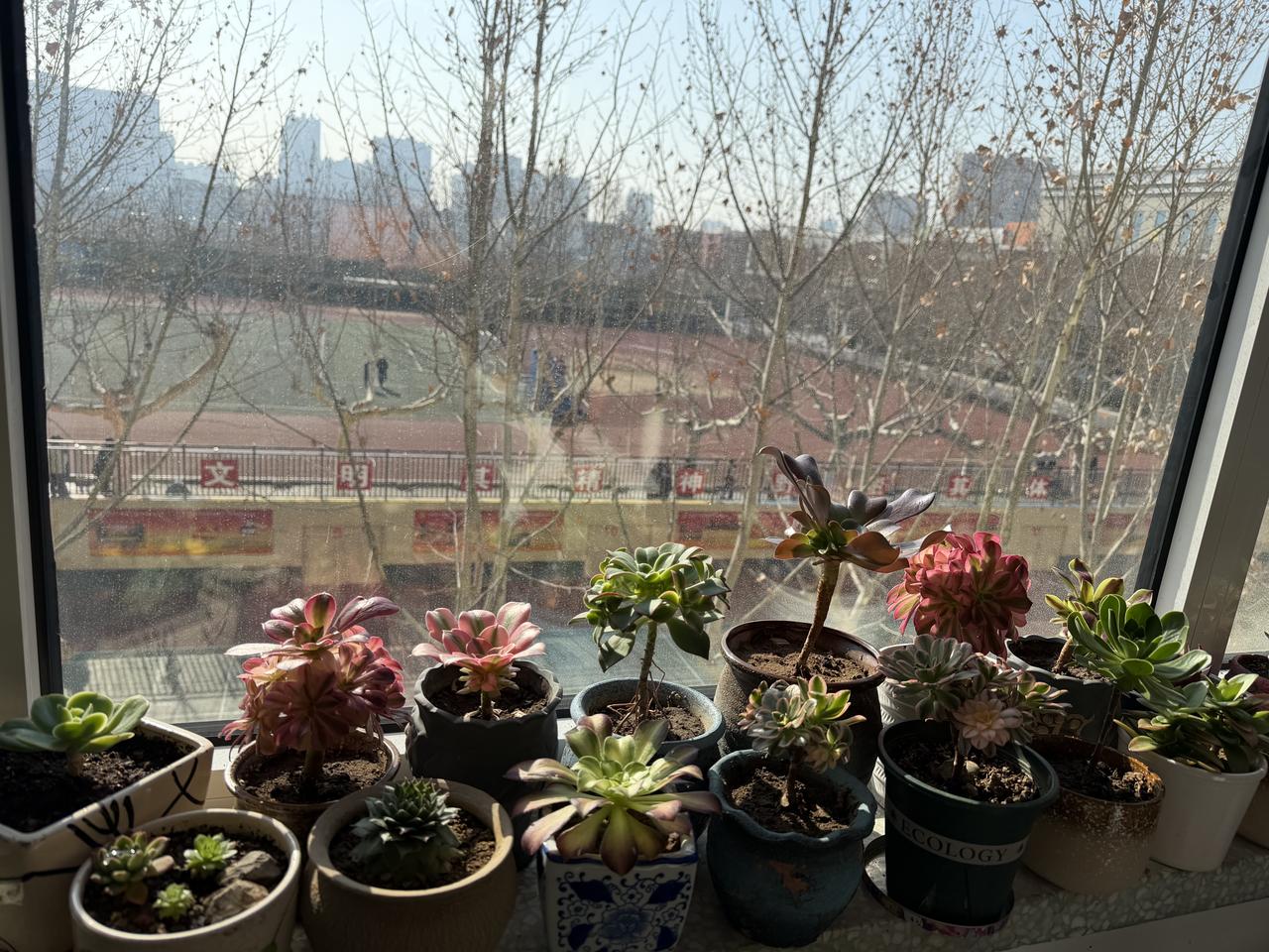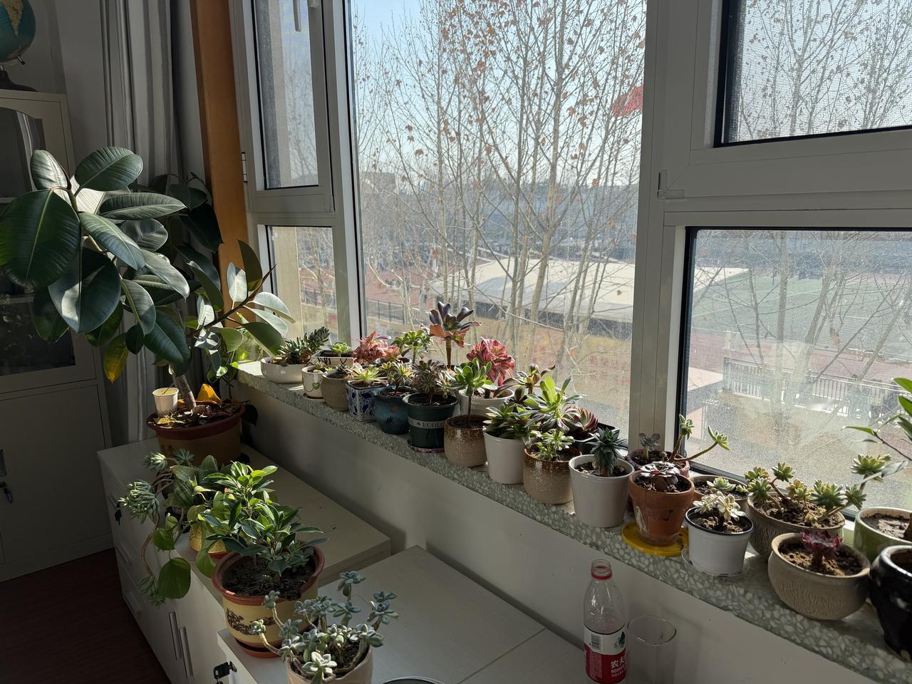 喜欢养花的我,不但在家里养花,还把花养到了学校的办公室里。瞧瞧这些小可爱们,不但美化了我的办公环境,而且还招引同事们的青睐与羡慕。 说来也奇怪,办公室的窗台特别适合养花,在我家阳台上的花养出来的状态都不如办公室的窗台上花好,可能家里的玻璃厚,挡光的缘故。 闲暇之余,有同事过来赏花,一直夸我养花高手,会养花,养出来的花好看、漂亮,并且想带走,此时此刻的我心情有点复杂,要是不给的话,显得我小气,要是让谁随便挑,确实有点不舍得,毕竟每一盆花都是自己的心头肉,就像自己的孩子一样,怎么舍得随便出让呢? 假如是你,你会非常大方地送人吗?