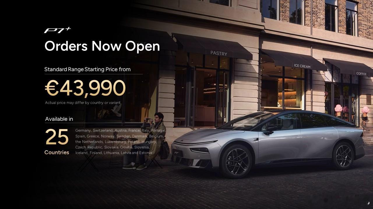 新款小鹏P7+欧洲正式上市新款小鹏P7+欧洲售价是国内2倍1月9日,新款小鹏P7+在比利时布鲁塞尔车展正式宣布欧洲上市,起售价为43,990欧元,折合人民币约35.8万元。预计4月起启动欧洲市场交付,覆盖德国、法国、西班牙、意大利等25个欧洲市场。