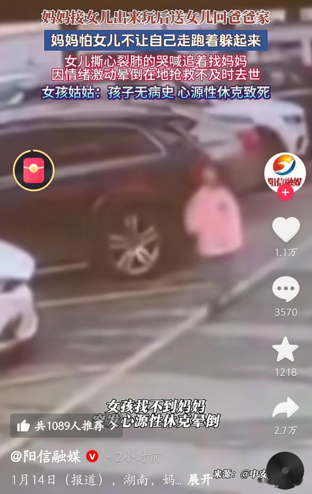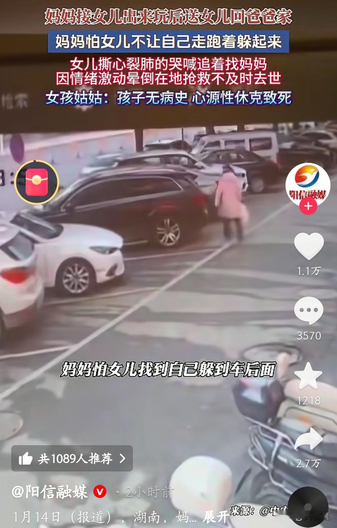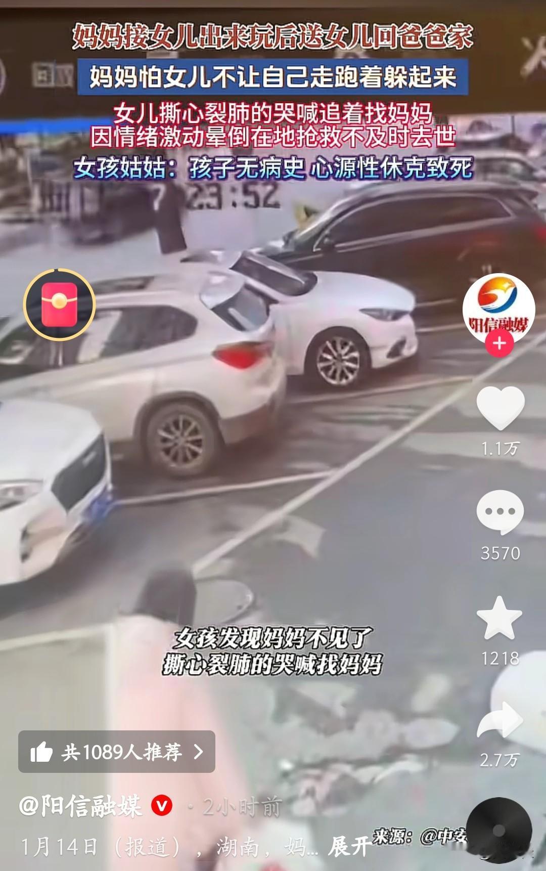 一个活生生的小女孩说没就没了,仅仅是因为和妈妈的一次分离。父母离异后,妈妈接女儿出去玩,送回爸爸家时怕孩子舍不得,竟选择跑着躲起来。孩子发现妈妈不见后,撕心裂肺地哭喊着追找,情绪激动到晕倒在地,最终因心源性休克抢救不及时离世,姑姑说孩子根本没有既往病史。 监控里那个小小的身影在停车场里慌乱找妈妈的样子,看得人心里揪得生疼。她只是想再抱抱妈妈,却没想到这一找,成了永别。大人的选择,最终让孩子用生命付出了代价。 为人父母,哪怕有万般无奈,也该多考虑孩子的感受啊。这样的悲剧,真的太让人痛心了,只希望再也不要有这样的遗憾发生。