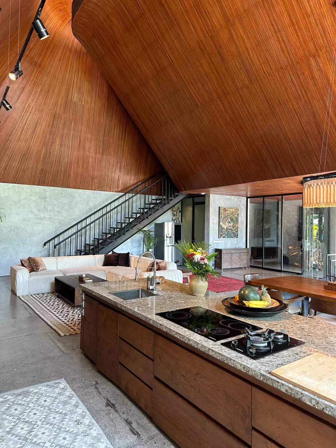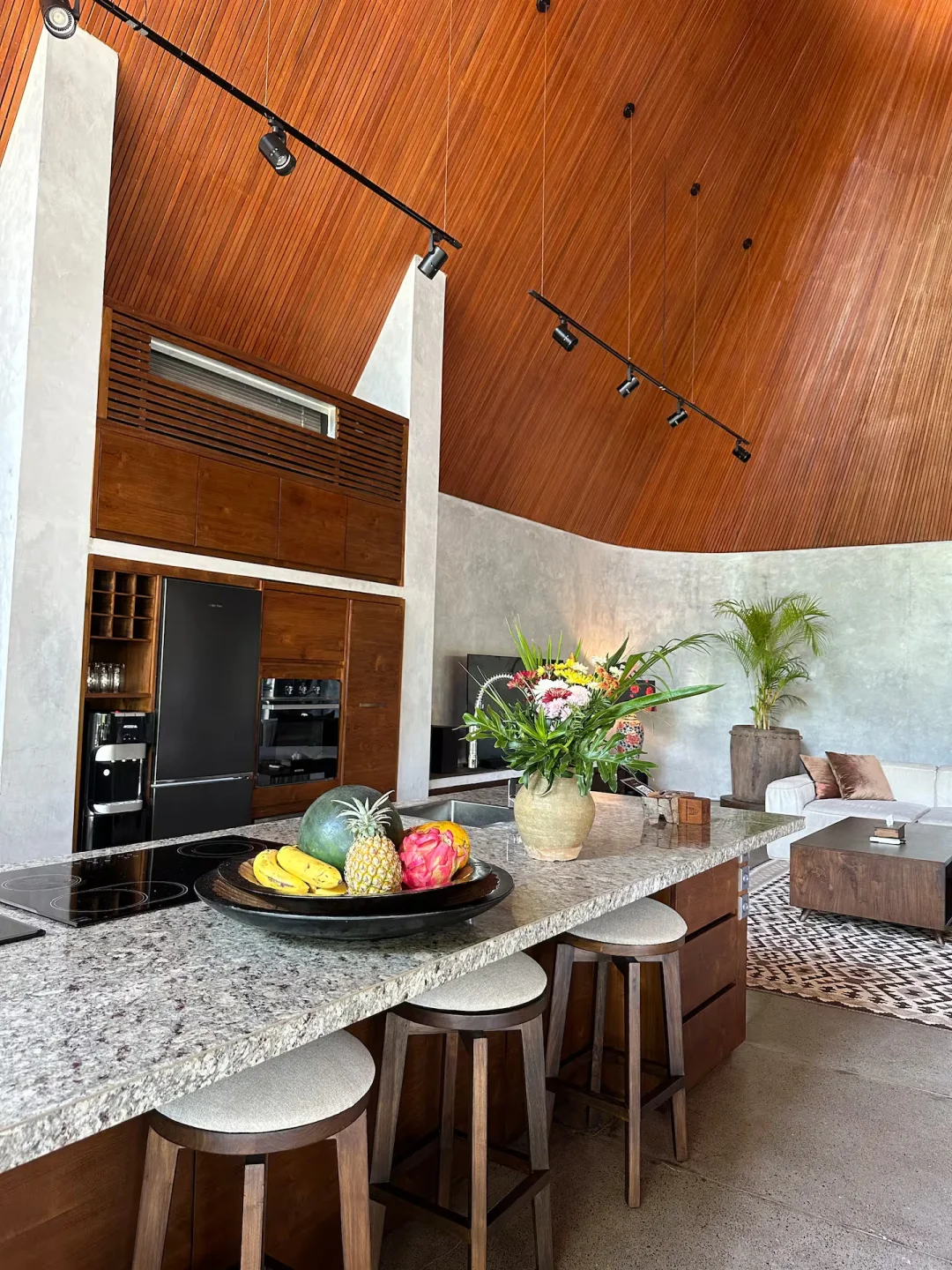 民宿除了漂亮,还有一个开放式厨房和烹饪岛,