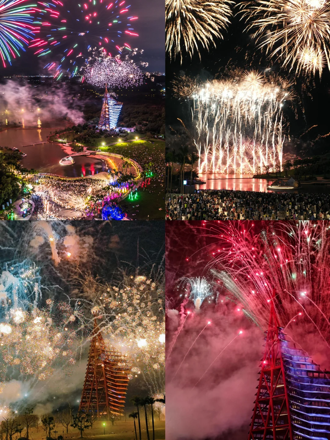 ➡️看焰幕烟火秀和歌舞表演,20:00 - 21:00还有四场烟花绽放,带娃一起许下新年愿望✌️结束完美一天~