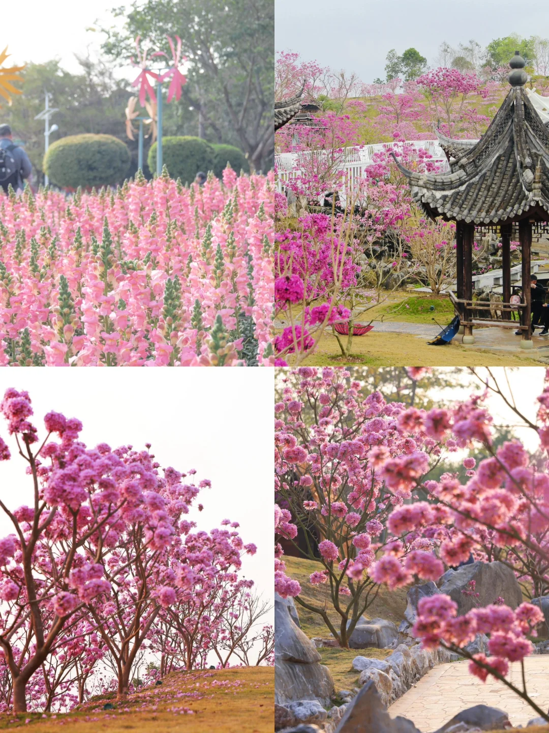 ➡️在清泉湖广场,一边看日景彩烟秀,一边享用美食。接着去看紫花风铃木与金鱼草,带娃拍春日限定大片!