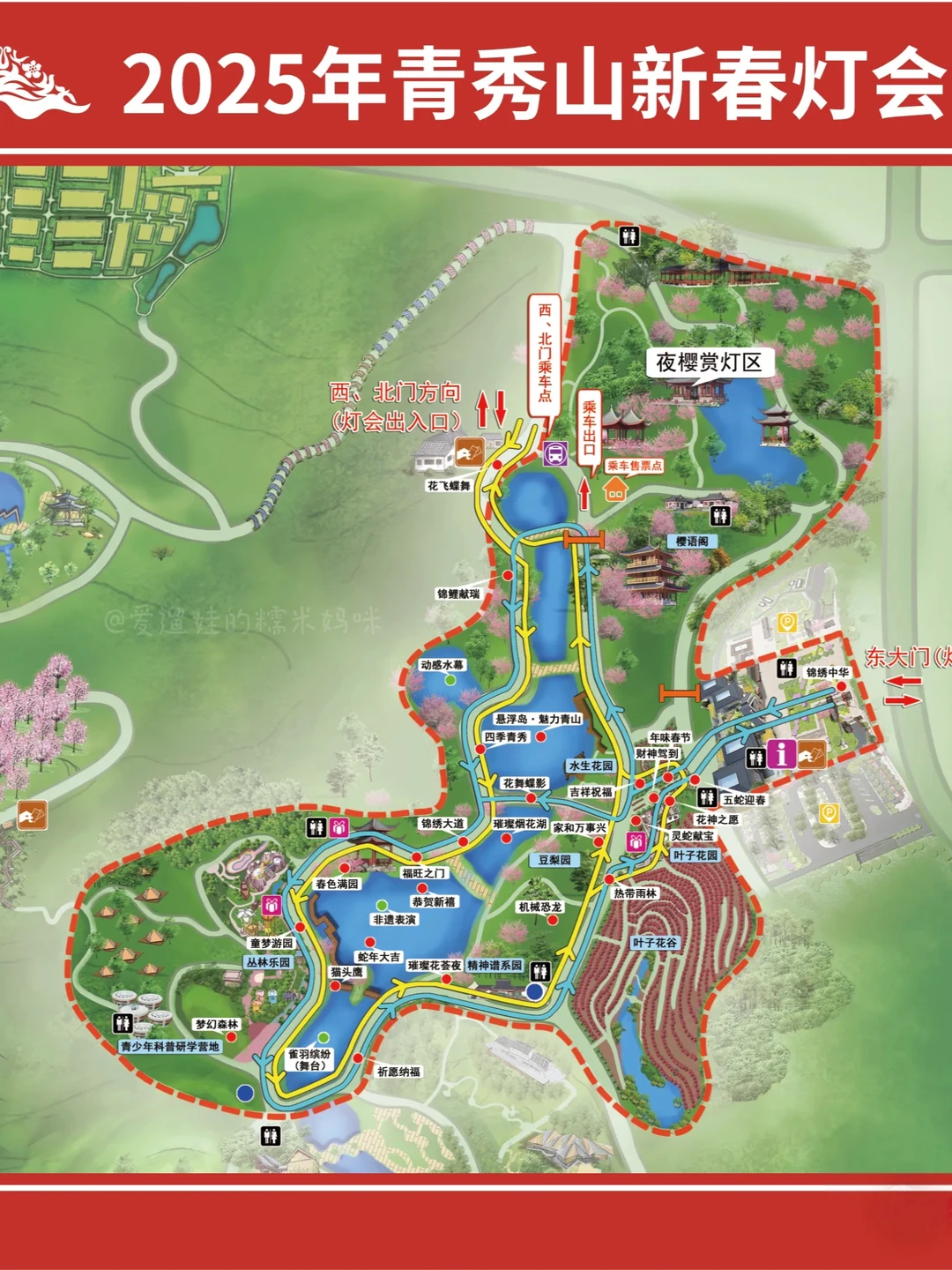 2️⃣新春灯会期间每晚18:00—23:00,西门和北门至东区灯会小火车专线可免费乘车✌🏻️