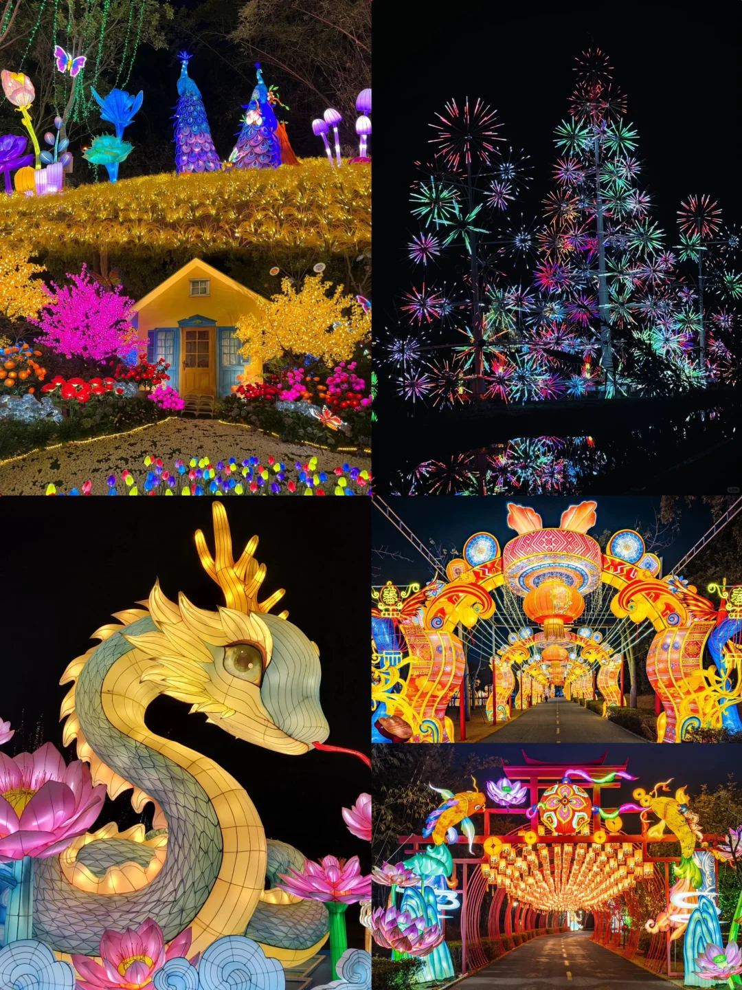 锦绣中华→财神驾到→花舞蝶影→锦绣大道→旺福之门→春色满园→祈愿纳福→机械恐龙🦖