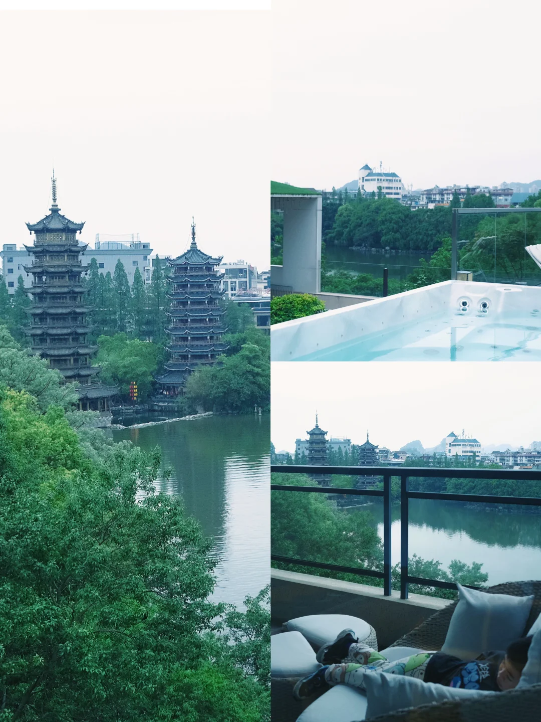 桂林亲子游Top1🌟躺着看日月双塔的快乐