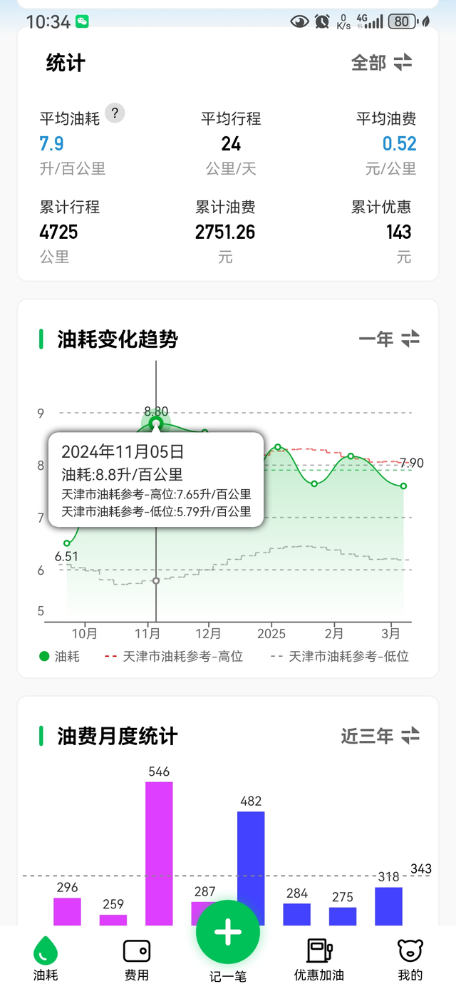 提车至今已经半年 跑了将近5000公里,几乎用于天津市郊通勤,上下班五公里但是有11个红绿灯,很难开快,偶尔跑一次快速路,油耗能到6点几,只要通勤油耗肯定再7.5以上。 一般换挡转数都在2500以下,这个即使拉高转也没有多少动力