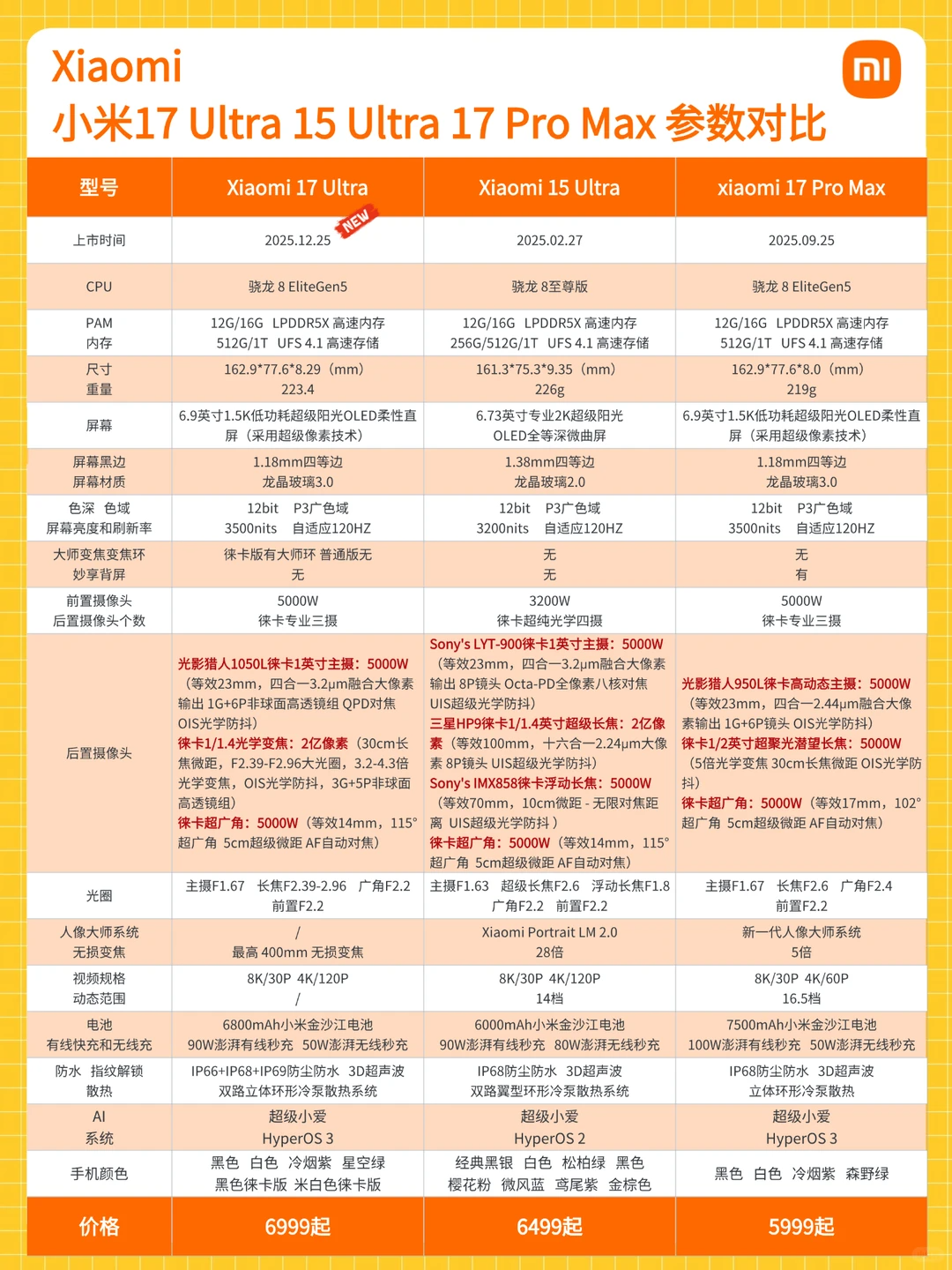 日常主力机,小米17 Ultra和荣耀Magic8 Pro各有千秋。小米17 Ultra这次大进步,8.29mm超薄直屏,手感轻盈舒服,6.9英寸大屏看剧刷视频视野开阔,6800mAh电池一天半稳,90W快充也够快。荣耀Magic8 Pro电池7200mAh更大,120W充电更快,重度使用两天不慌,微曲屏握持更贴手。系统小米澎湃OS流畅自然,荣耀MagicOS AI助理自进化更聪明。信号防水都优秀。小米适合大屏直屏党,荣耀适合续航焦虑党。两台日常体验都很棒,选小米更轻薄,选荣耀更持久荣耀Magic8系列 小米17ultra 小米手机