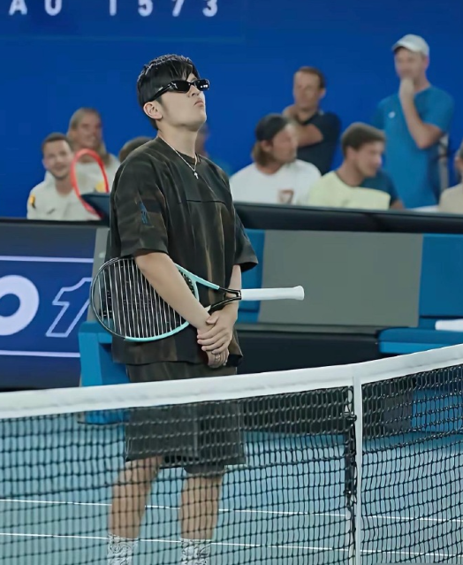 周杰伦还是那么爱耍帅扮酷,戴着墨镜上澳网球场。动作很帅,打球姿势一般,没几分钟就下场了。
