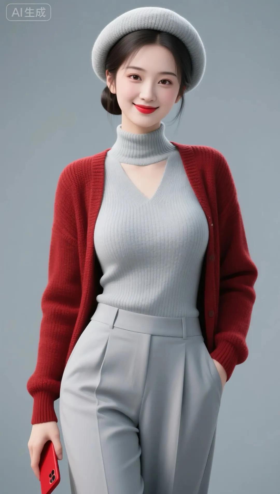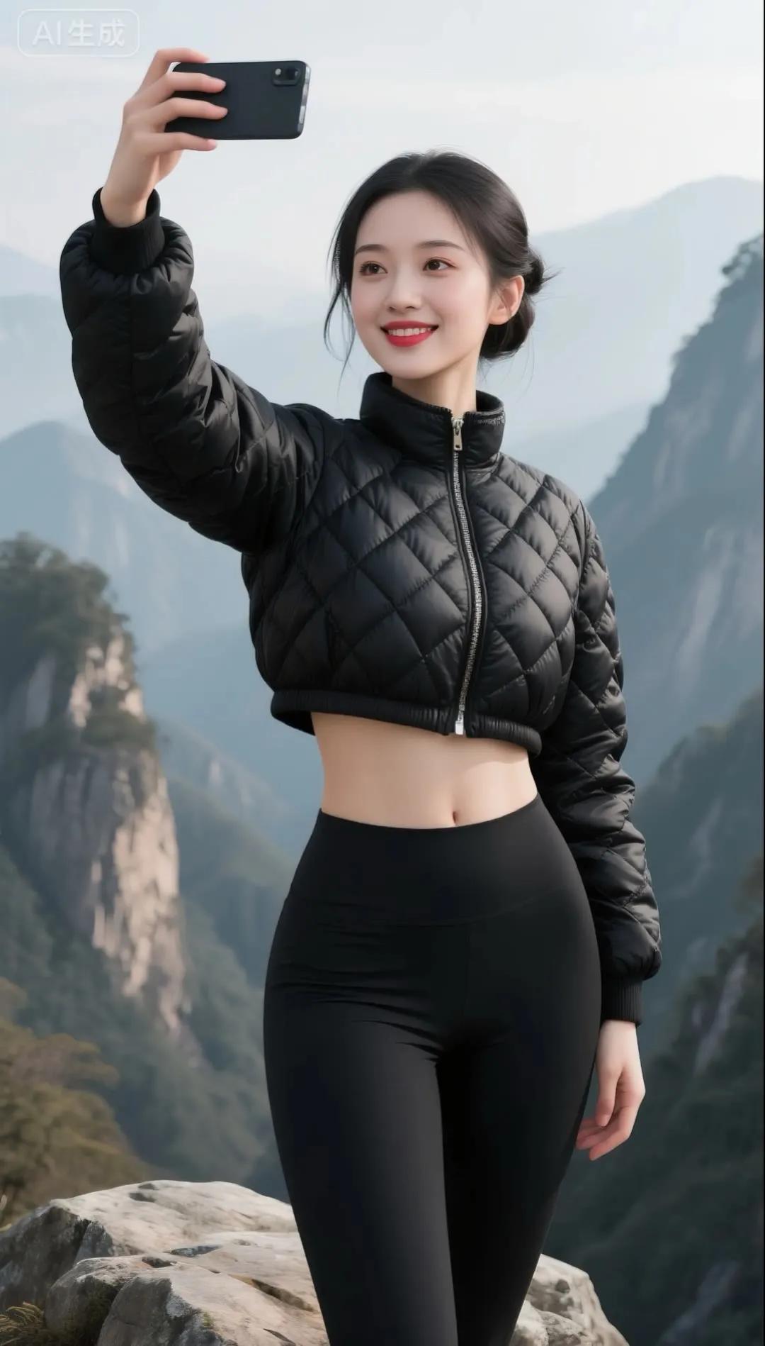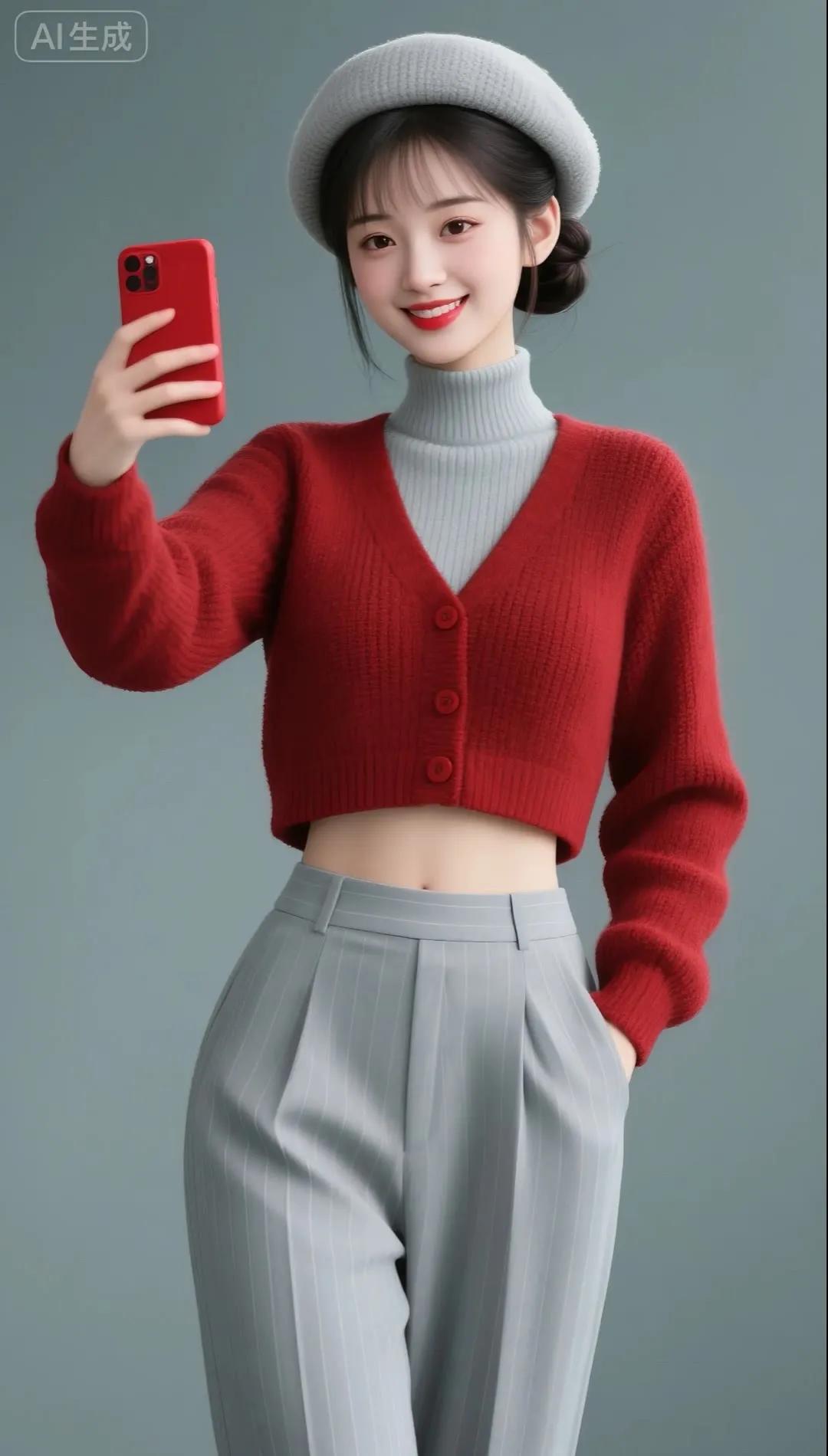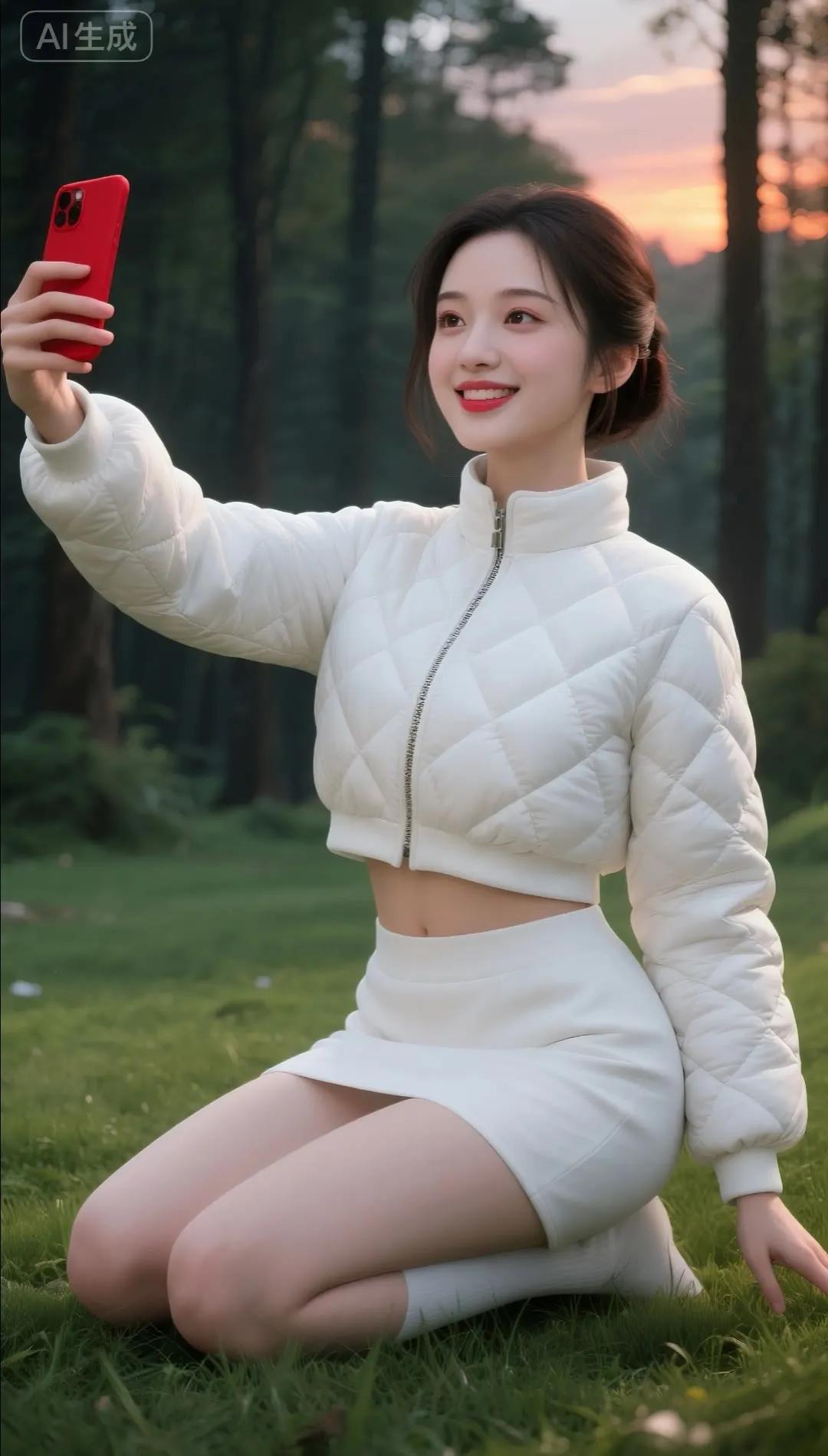 冬日雪景中的甜美自拍,红色羽绒服与白雪的完美搭配!🌨️📸