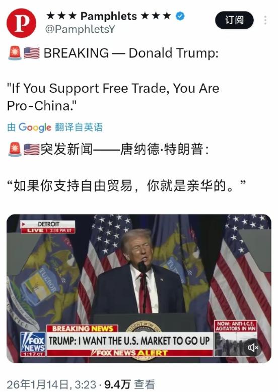 支持自由贸易就是亲华,只问你一句:魔不魔幻? 特朗普再次发神经,在网上发帖说出