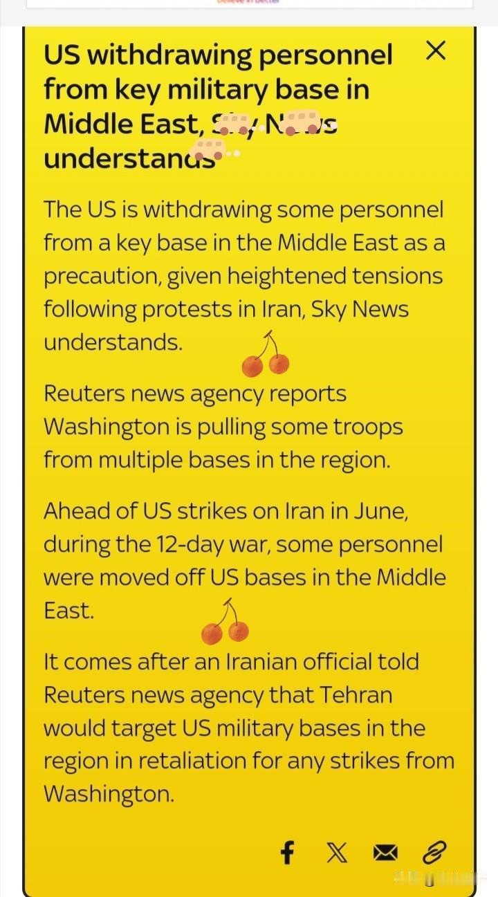 伊朗全国戒严,美军开始从卡特尔基地撤出运输机和加油机,多国航空公司停飞以色列、伊朗附近海域,商船停运。 伊朗 伊朗