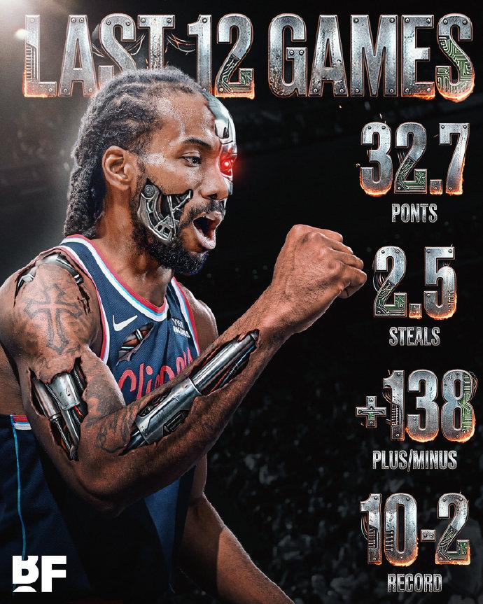 莱昂纳德进攻端7记三分,33分1失误;防守端4断0犯规,北伐基本盘!稳得一笔! 全场33分3篮板4助攻4抢断,快船小取四连胜,把三分提到常规武器的小卡是真的强。 过去12场比赛,小卡场均32.8分6.5板3.8助2.6断0.9帽,投篮命中率52.4%,三分46%,带领快船10胜2负,同时期联盟第一。 莱昂纳德再一次向大家证明了,健康的他绝对是联盟攻防一体南玻万!目前快船17胜23负排在西部第11,只要卡登健康,就这状态快船很快能打进西部前八。