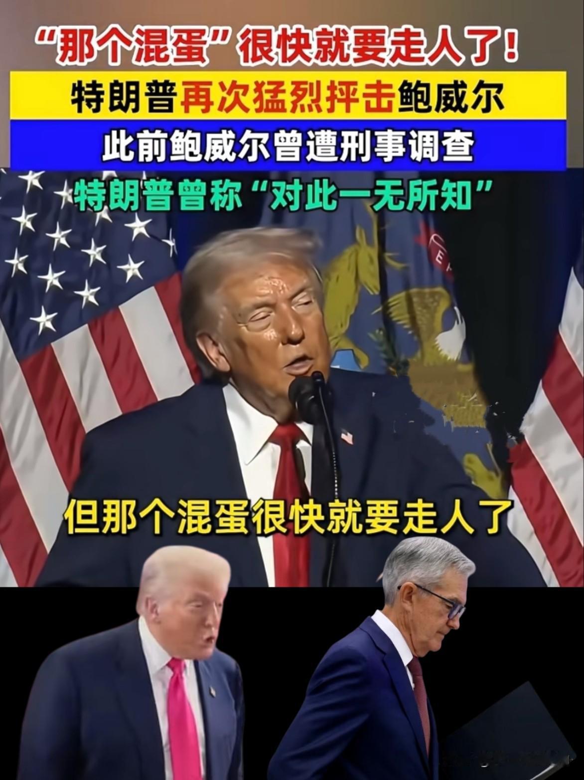 “那个混蛋很快就要走人了”! 特朗普抨击鲍威尔“混蛋”:提名者反目,这出戏比美剧还狗血! 特朗普一句一口“那个混蛋”,把对鲍威尔的嫌弃写满脸上,可谁还记得,当初是他亲手提名鲍威尔当美联储主席的? 前脚捧上高位,后脚骂到狗血淋头,这俩人的矛盾简直离谱到家! 嘴上说着对调查鲍威尔“一无所知”,转头就放狠话逼宫,明眼人都看出来这波操作是醉翁之意不在酒! 特朗普急着降息拉选票,鲍威尔偏按经济规律来,政策不合拍就直接掀桌子,拿司法调查当工具施压。 美联储本应保持独立,现在却成了政客博弈的棋子,鲍威尔硬扛不低头,特朗普硬刚要换人。 说到底都是为了自己的政治算计,最后遭殃的?还不是美国普通老百姓的钱袋子! 你们觉得特朗普这波操作,是真的为了经济还是纯搞政治报复?