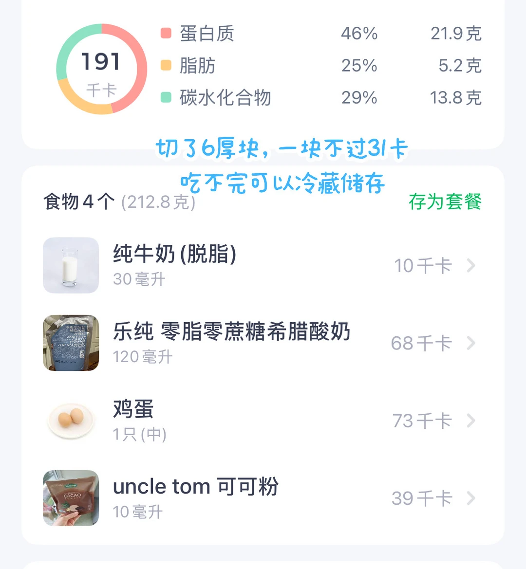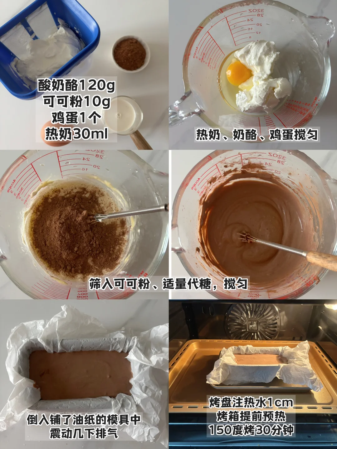🥳好久不见,我的电子姐妹们~不在的日子去生了个👶,产后减脂开始啦,解馋小甜品先搞起来! 👩🍳抑制食欲的巧克力蛋糕你值得拥有,无糖油无面粉,还是生巧口感~ 💕31卡/块 🌈减脂、健身、巧克力控、蛋糕脑袋都去做 . 🍃食材(191卡-5寸👉附热量表): 热奶30ml 可可粉10g 奶酪(脱乳清)120g 鸡蛋1个 🌈代糖的量自己✋~ . 📖简单步骤一看就会,直接翻图4️⃣ . 食材简单,美味不简单‼️ 嘴馋的时候来一块,就很nice‼️ ️🌈姐妹们都要多吃不胖‼️