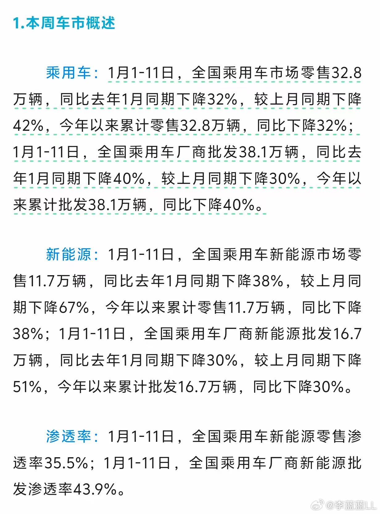 1月的前11天,乘用车市场的零售数据有点难以描述。