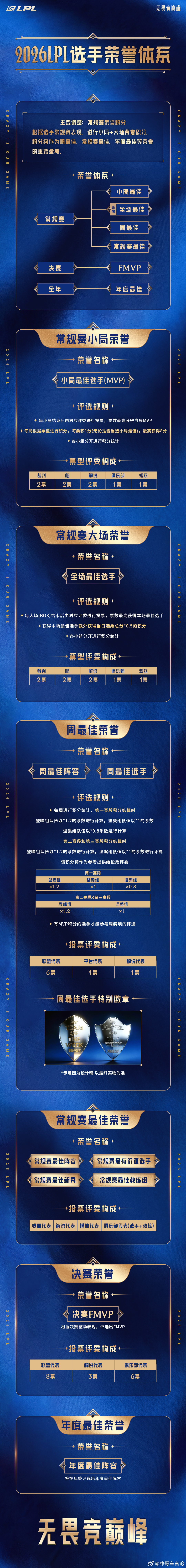 2026年LPL第一赛段于1月14日正式开赛,新赛制引入三大分组和双边无畏征召模式,积分权重大幅提升至80分,引发玩家对主力选手休赛期压缩的讨论。登峰组(S级):TES、iG、BLG、JDG、WBG、AL(6队); 坚毅组(A级):EDG、WE、NIP、TT(4队);涅槃组(B级):OMG、LGD、LNG、UP(4队)。组内双循环BO3:采用双边无畏征召(全局BP),新增每大场POM(最佳选手)评选。