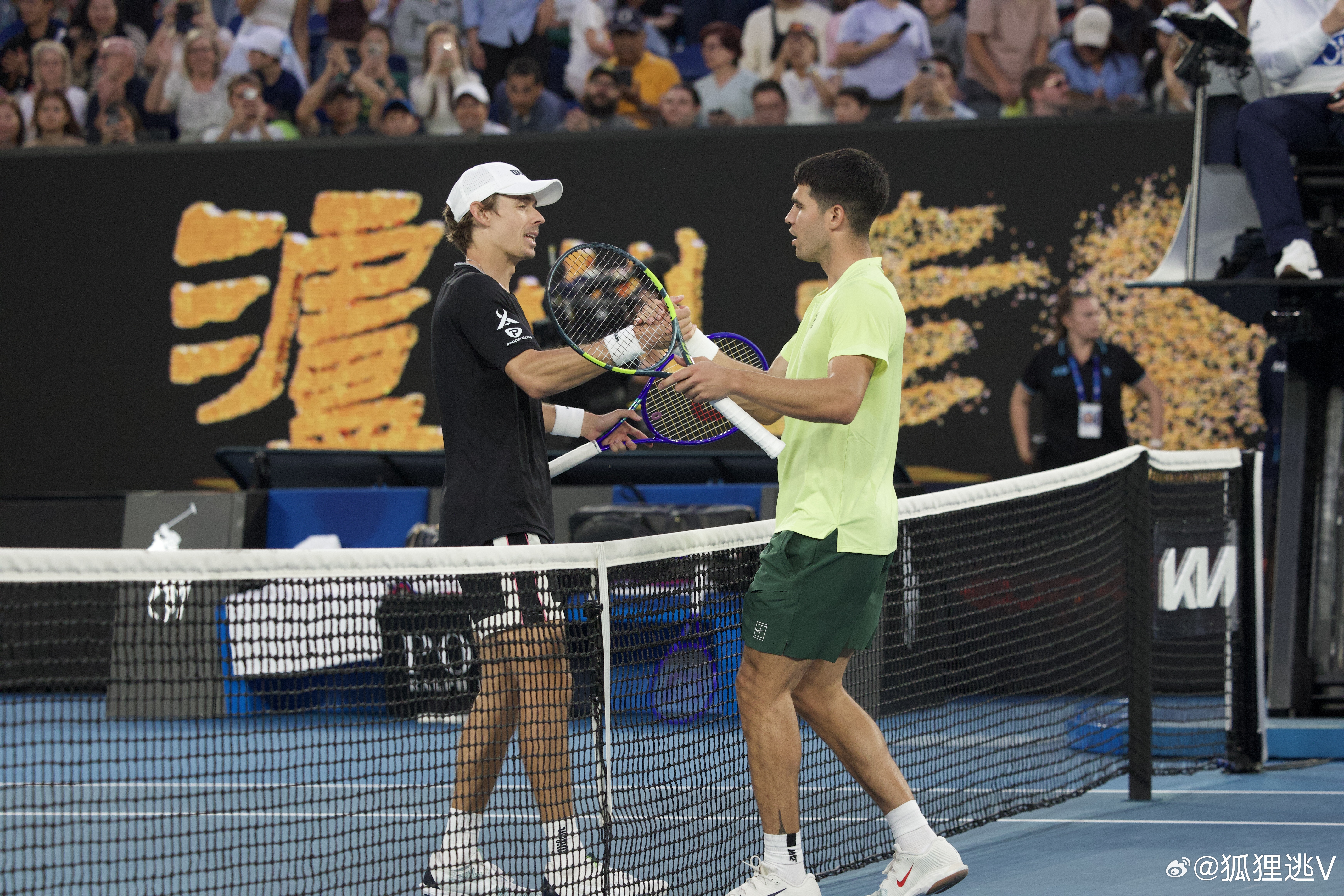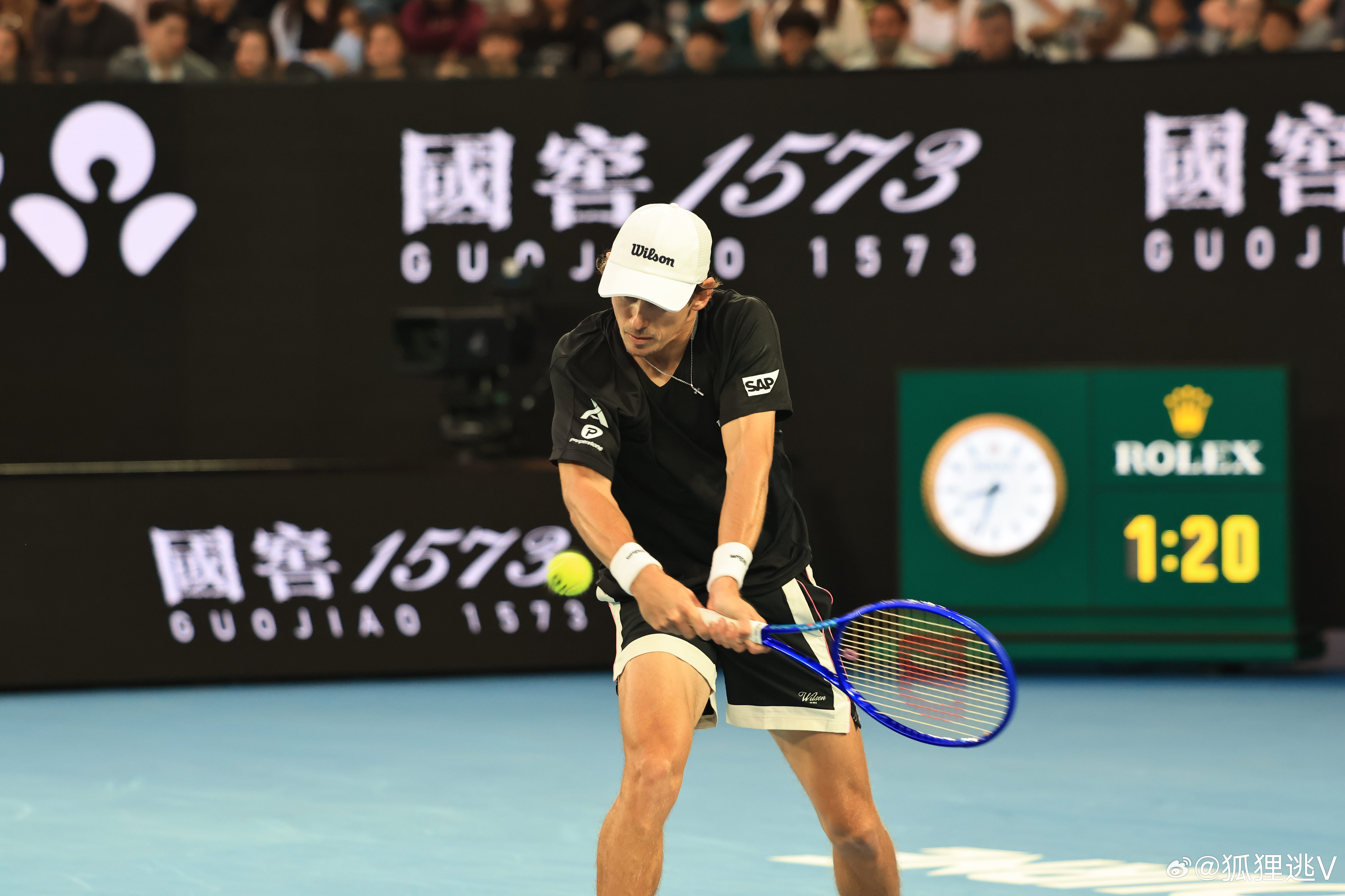 阿卡终于能在表演赛中击败德米纳尔,周董现场观摩了比赛。澳网2026