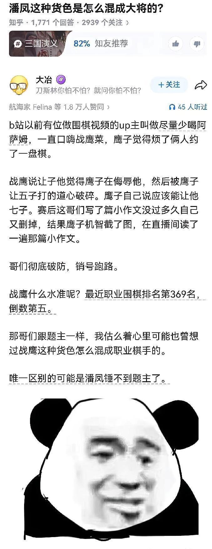 你发现没?昨天在棋社里听着几个人聊围棋,有位老棋迷压低声音说了句让我愣住的话:像柯洁那种级别的,才有资格说战鹰“菜”! 他说这话的时候还抿了口茶,眼神里带着点无奈。意思不是夸柯洁,而是讲“话语权”——高手一句话,大家才觉得有分量;普通网友骂两句,就像路边瞎吵,没太多人放在心上。 没想到一句话能把讨论推向两极:有人觉得这是对实力和影响力的尊重,觉得职业选手评价更专业;也有人说这样太护短,艺术家批评也该被听见。说白了,这事儿其实是“谁有资格评判”的老问题。 我听着心里不是滋味,换谁都会想:如果自己是被点评的一方,会不会更在意那些“有分量”的声音? 你们怎么看,高手的评价真的比普通人的更值得信服吗?身边有遇到过类似被“有分量”一句话左右舆论的事吗