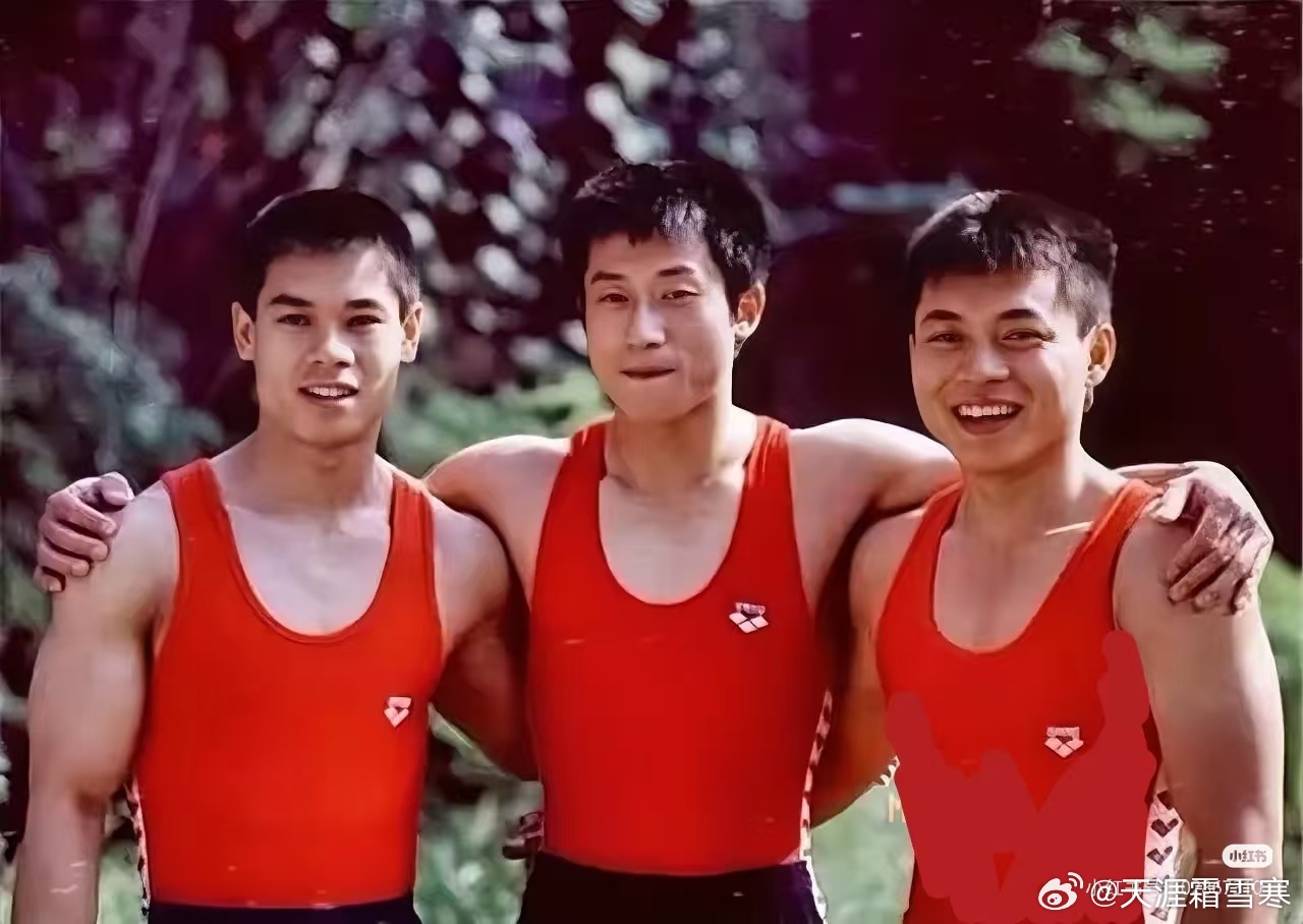 1983年体操世界锦标赛,中国男团打破苏联队的垄断,首次夺得团体世界冠军。上场的六名队员是:李宁、童非、楼云、许志强、李月久、李小平。黄玉斌没有上,是替补。图2是从左至右是李宁、童非、楼云,图3是李宁,图4是童非,图5是楼云,图6是许志强,图7是李月久,图8是李小平(李小鹏的老丈人),图9是黄玉斌。当时是666赛制,即6人上场,比6个项目,6人的分数全部是有效分,因此当时必须是全能型选手才能参赛。当时第一场是规定动作,团体决赛是自选动作,两场总分相加为团体总分。每一个人都需要比12项次,童非是得到了118.70分,李宁118.40分,楼云117.85分,许志强117.80分,李小平117.55分,李月久117.30分。李月久虽然得分最低,但基本上项项打头阵,是团队的定心丸。那个世锦赛团体冠军也奠定了中国体操在世界上的地位。