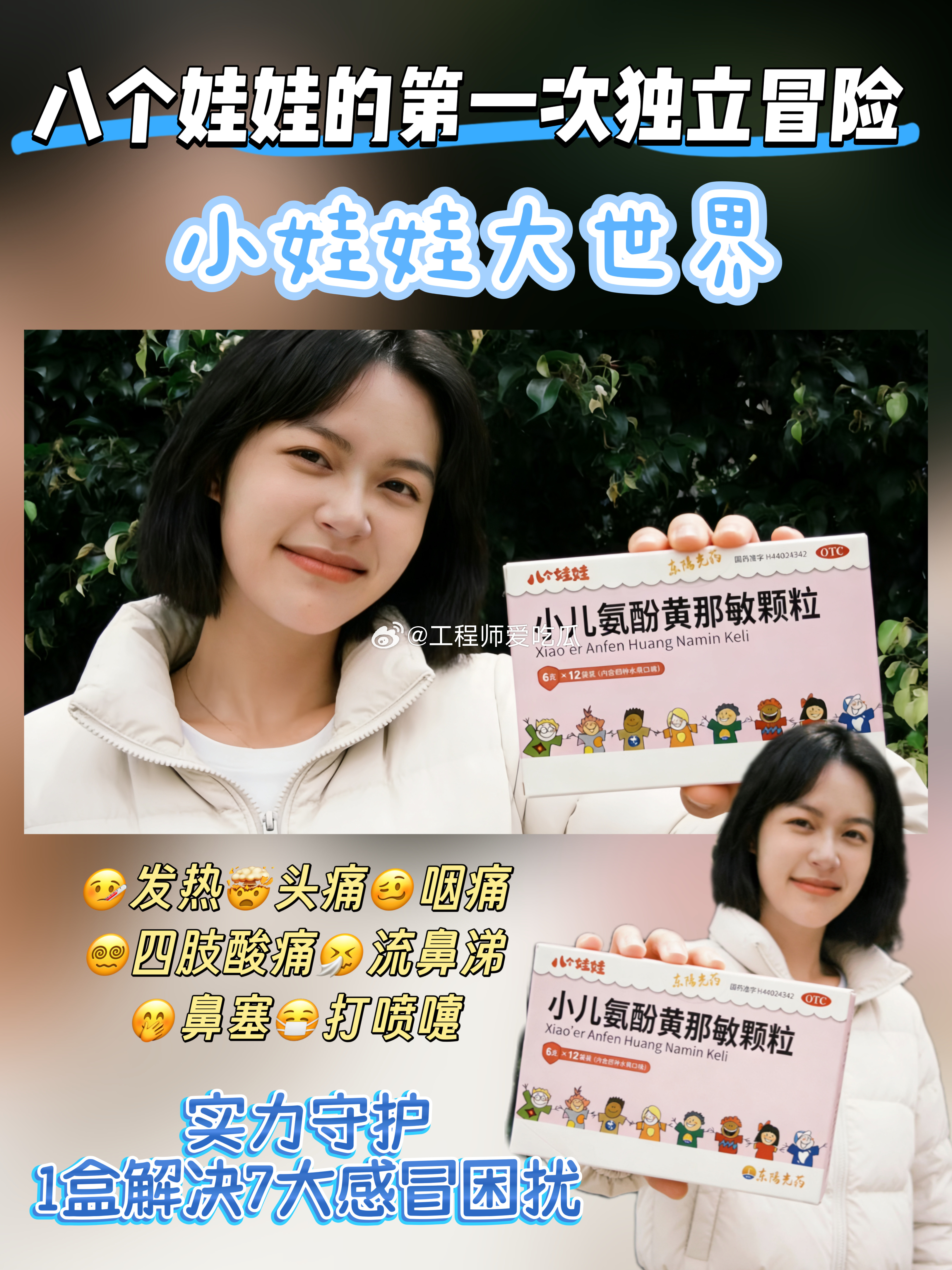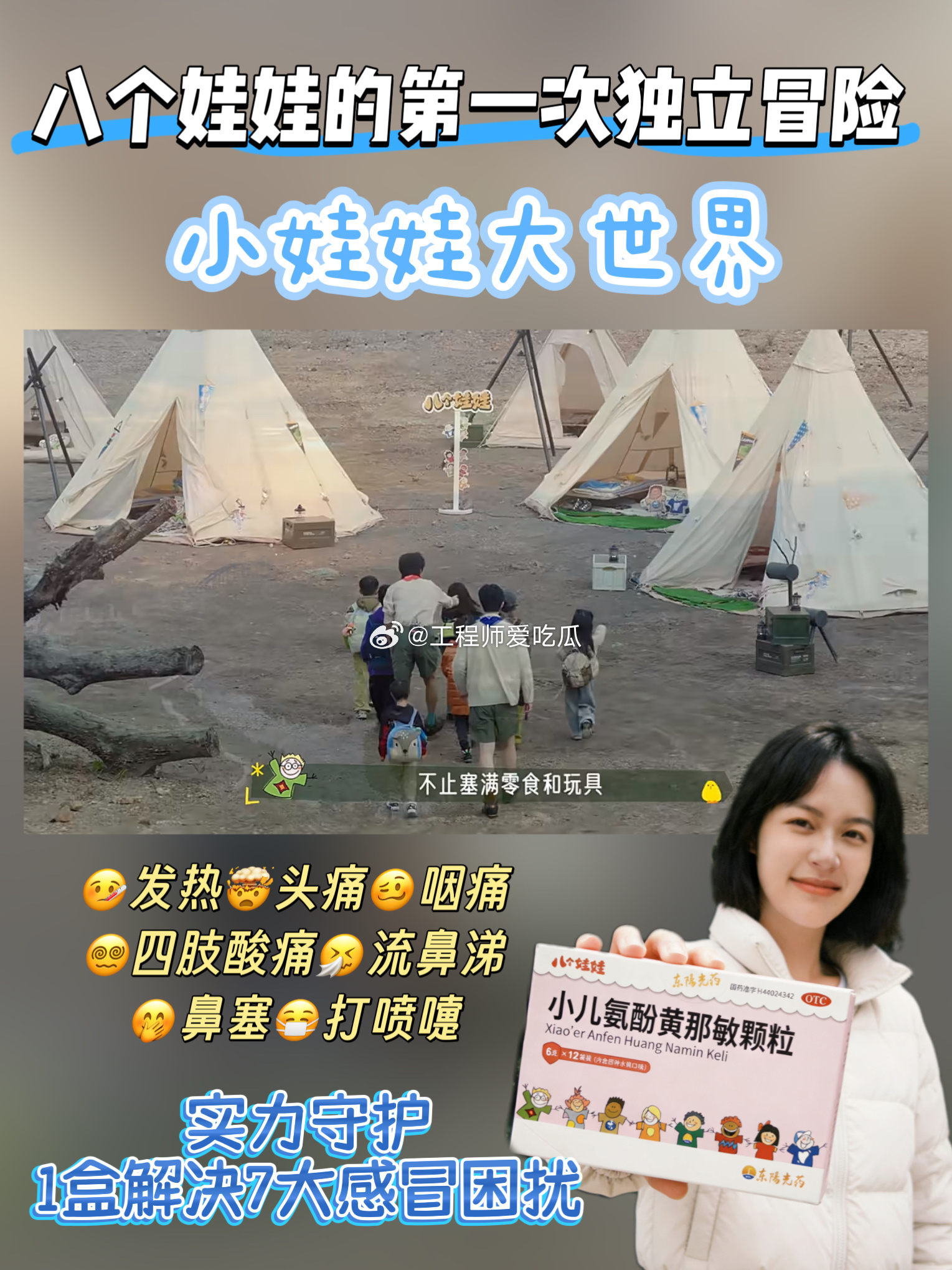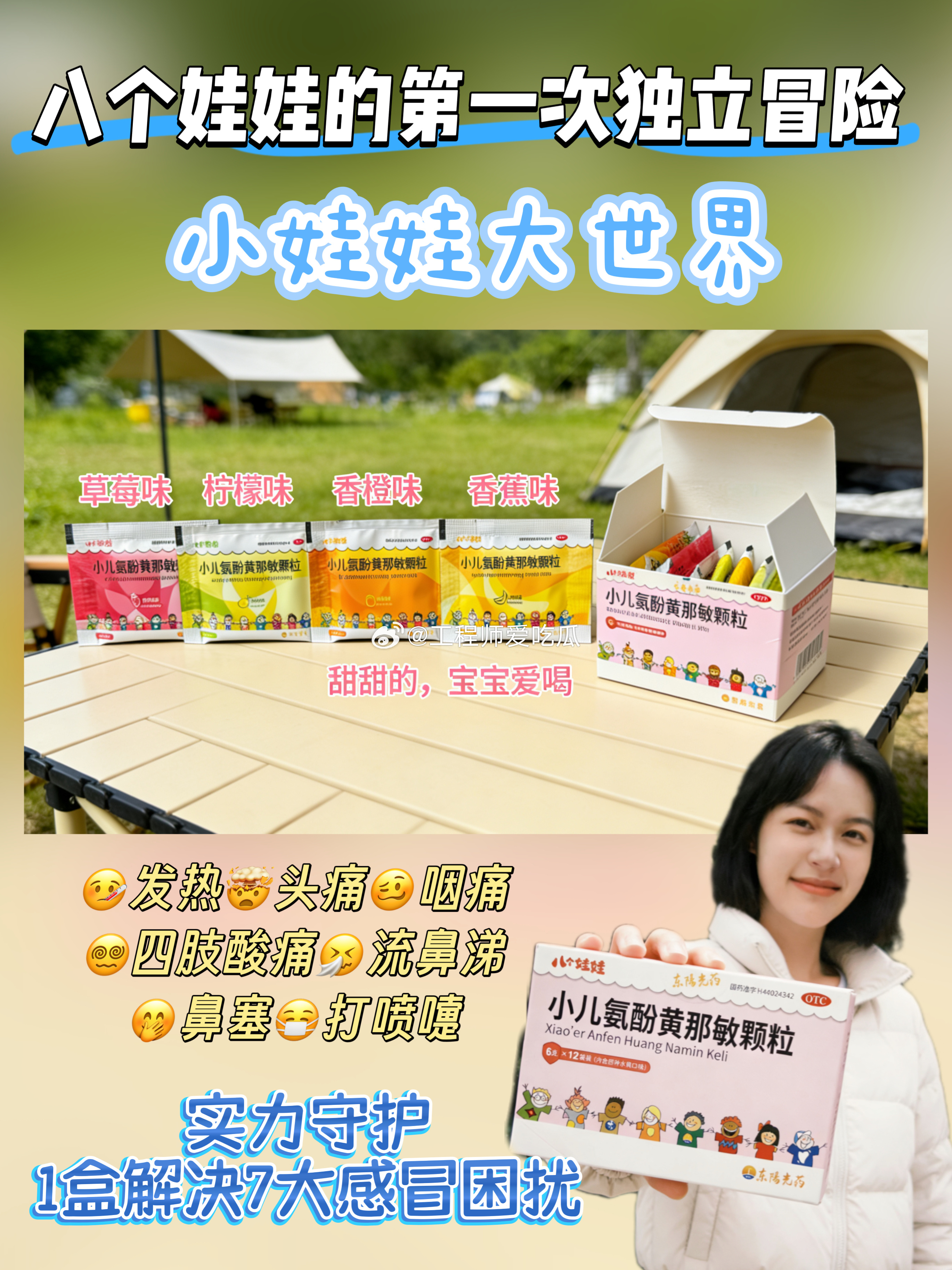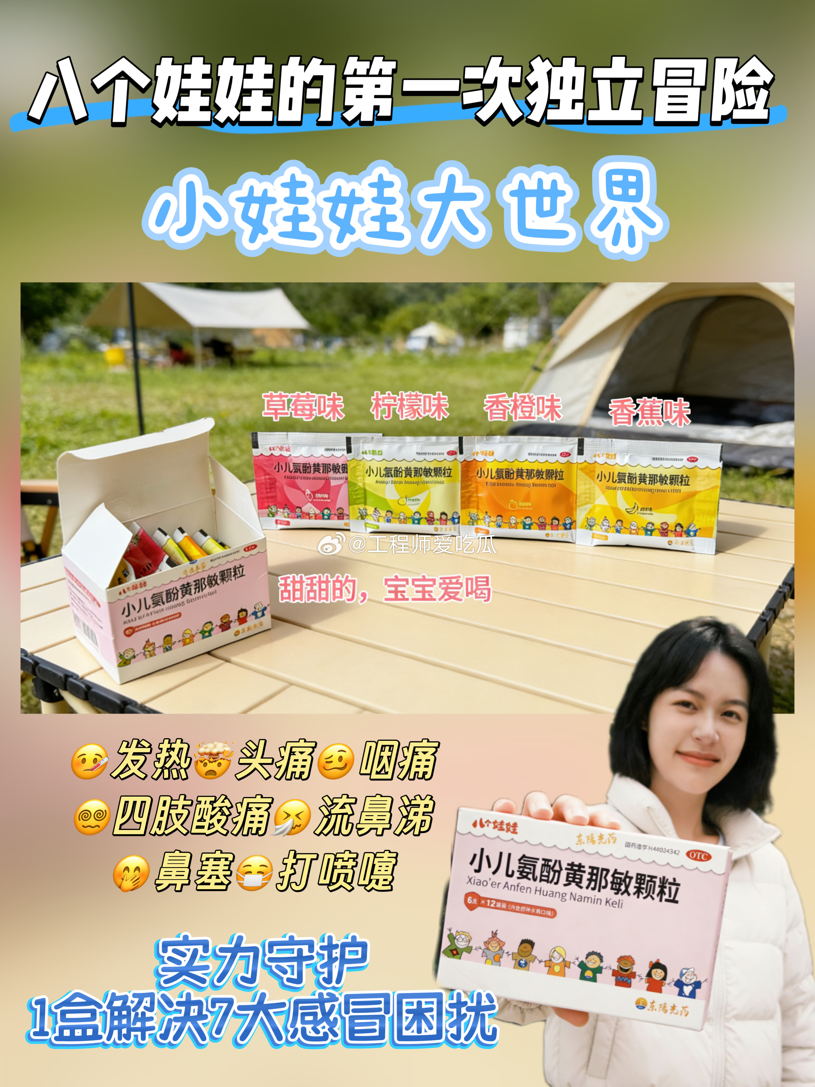 看大朋友与小朋友一起探索自然世界,让成长的每一步,都有健康守护👉 快来围观八个小侦探的奇妙微观之旅!八个娃娃的第一次独立冒险小娃娃大世界 东阳光药八个娃娃🌈今天中午12点,爱奇艺的《小娃娃大世界》已经上线啦,这次是八位小侦探的微观世界大冒险。朋友们你们看了吗?🌈这期节目里,李川和肖凯文两位大朋友带领小勇士们直面第一次越野挑战。在自然这个最大的教室里,孩子们学会的不仅是认识花草昆虫,更是齐心协力完成不可能任务的团队精神。这种在阳光下奔跑、在协作中成长的体验,无疑是给孩子最宝贵的礼物。节目就像一扇窗,让我们看到,适当的户外活动对增强孩子抵抗力、保持身心健康至关重要。🎒🎒🎒🎒🎒🎒小朋友们的书包里,不止塞满零食和玩具,还有对户外的期待,迎接他们的还有前所未见的微观世界。看着节目里孩子们在户外那股兴奋劲儿,我就想起我家那个“小探险家”——每次出门撒欢回来,不是汗津津就是鼻涕虫,当妈的心啊,真是时刻为他悬着。但成长的脚步不能拦着,我们能做的,就是为他们备好“健康守护”,让每一次探索都更安心。💪让我下定决心认真研究家庭小药箱的,正是今年秋天的一次经历。孩子跟着我去公园观察落叶,玩得忘乎所以,结果傍晚就开始打喷嚏、流清水鼻涕,半夜竟然烧到了38.5℃。当时手忙脚乱,家里只有成人退烧药,根本不敢用。最后连夜跑急诊,医生叮嘱说:“家里有孩子,儿童常用药一定要备一些,但更关键的是要用对。” 这句话我记到现在。看着宝宝鼻塞流涕、发烧哭闹,心里比自己生病还难受,可喂药更是难上加难——威逼利诱全用上,宝宝还是紧抿嘴巴,挣扎着把药推走,每次喂完都心力憔悴。👉直到挖到“八个娃娃”小儿感冒药,才真正告别喂药难题!✅四大水果味征服挑嘴宝宝和普通感冒药的苦味不同,它自带4种清甜水果味。香甜的草莓🍓清爽的柠檬🍋软糯的香蕉🍌鲜爽的香橙🍊一打开包装,浓郁果香直钻鼻腔,娃的注意力瞬间就被吸引住。像喝果汁一样的吃药体验,不用担心宝宝喂药哭闹啦。🥰哪怕生病也能甜甜的,从内到外全方位呵护宝宝“脆弱小心灵”。✅更让家长放心的是它的成分采用经典复方,成分简单有效,还不含咖啡因和金刚烷胺等不利成分,而且它能针对性缓解宝宝感冒引起的流鼻涕、打喷嚏、发热等7大感冒症状,帮娃快点恢复活力。关键是它用药量还清晰标注,按年龄和体重定制化用量。现在我家药箱常备着它,万一娃不舒服,我也不用再为给宝宝喂药焦虑,让娃在甜蜜中扛过感冒。✅实力守护,1盒解决7大感冒困扰🤒发热、🤯头痛、🥴咽痛、😵💫四肢酸痛、🤧流鼻涕、🤭鼻塞、😷打喷嚏👉对症缓解因流感或感冒引起的各种常见不适宝宝感冒的“全能急救员”,成分安全温和,家长更放心。🎒🎒🎒🎒🎒🎒八个娃娃小儿氨酚黄那敏颗粒换新装咯🪄那个育儿圈口碑爆棚的感冒药✨但这次真的美到心巴上啦!新包装变身梦幻粉嫩系,👀从今天起认准这个粉粉嫩嫩的新包装,摆在药箱里都是可爱担当,颜值即正义的视觉享受还能缓解生病时的紧张心理。🤔看了《小娃娃大世界》,才发现我们守护孩子健康,不是为了把他们关在“无菌室”,而是装备好他们,让他们能更勇敢、更安全地去拥抱世界。这种守护,是节目里鼓励他们去尝试、去协作的精神支持,也是家里那个科学配备、定期检查的小药箱所提供的切实保障。真正的“健康守护”理念,不是阻止孩子探索,而是教会他们如何在探索中保护自己,同时我们家长也做好科学的准备。就像节目里小战士们团结互助一样,家庭的健康守护也需要知识和准备来“打配合”。换新装不换心,还是那个宝妈宝爸们信赖的老朋友。快检查家里药箱,认准新包装的八个娃娃哦~