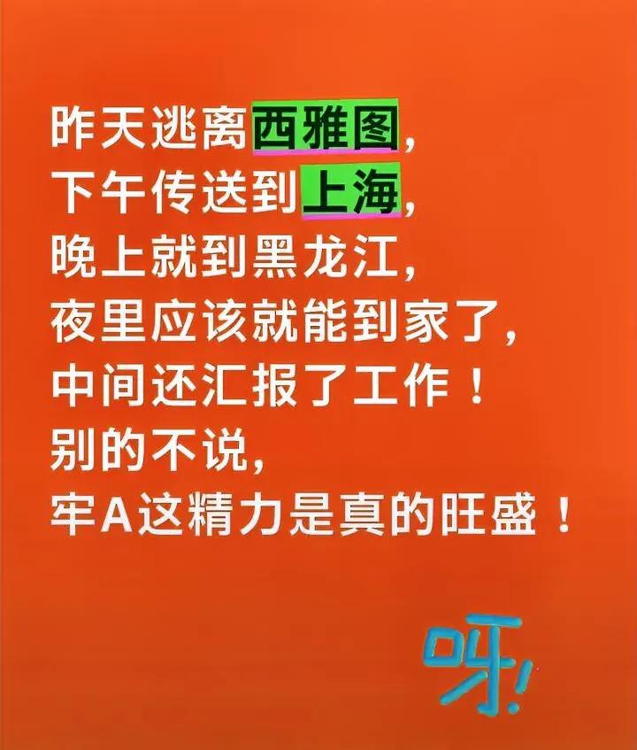 007式逃离!牢A这波跑路速度堪称教科书! 13号刚被《纽约时报》挂大头照、曝个人信息,14号就光速落地国内——牢A“逃离西雅图”这波操作,比007还利落! 电视剧里逃跑磨磨唧唧的多半领盒饭,真·避险就得像他这样:理智冷静不恋战,行李都不收拾直奔大使馆,美国想拦都没辙[机智] 网友笑称“这哪是跑路,是精准止损天花板”! 想起老电影《寻堡奇遇》三部曲,里面亚裔反抗压抑时的癫狂状态藏满隐喻,如今竟被牢A一一揭开谜底。能凭“斩杀线”理论戳破美国社会本质,还能在危险来临前秒速避险,这脑子是真的好使[赞]