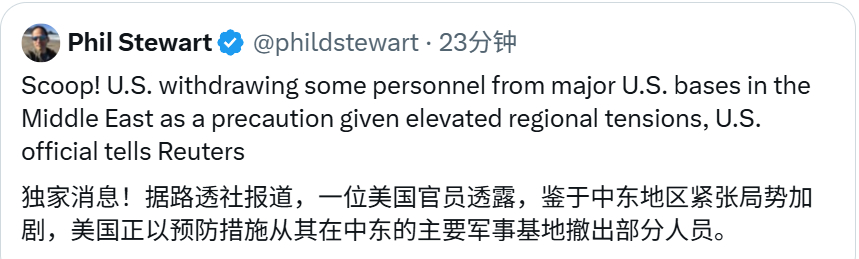 🔻战!🔻不过真打估计还得等,川普作战指挥室里面大屏幕就挂着关注各个X上面军事博主的账号呢,你们都觉得要打,反而暂时不会打。美正从中东主要基地撤出人员热点现场