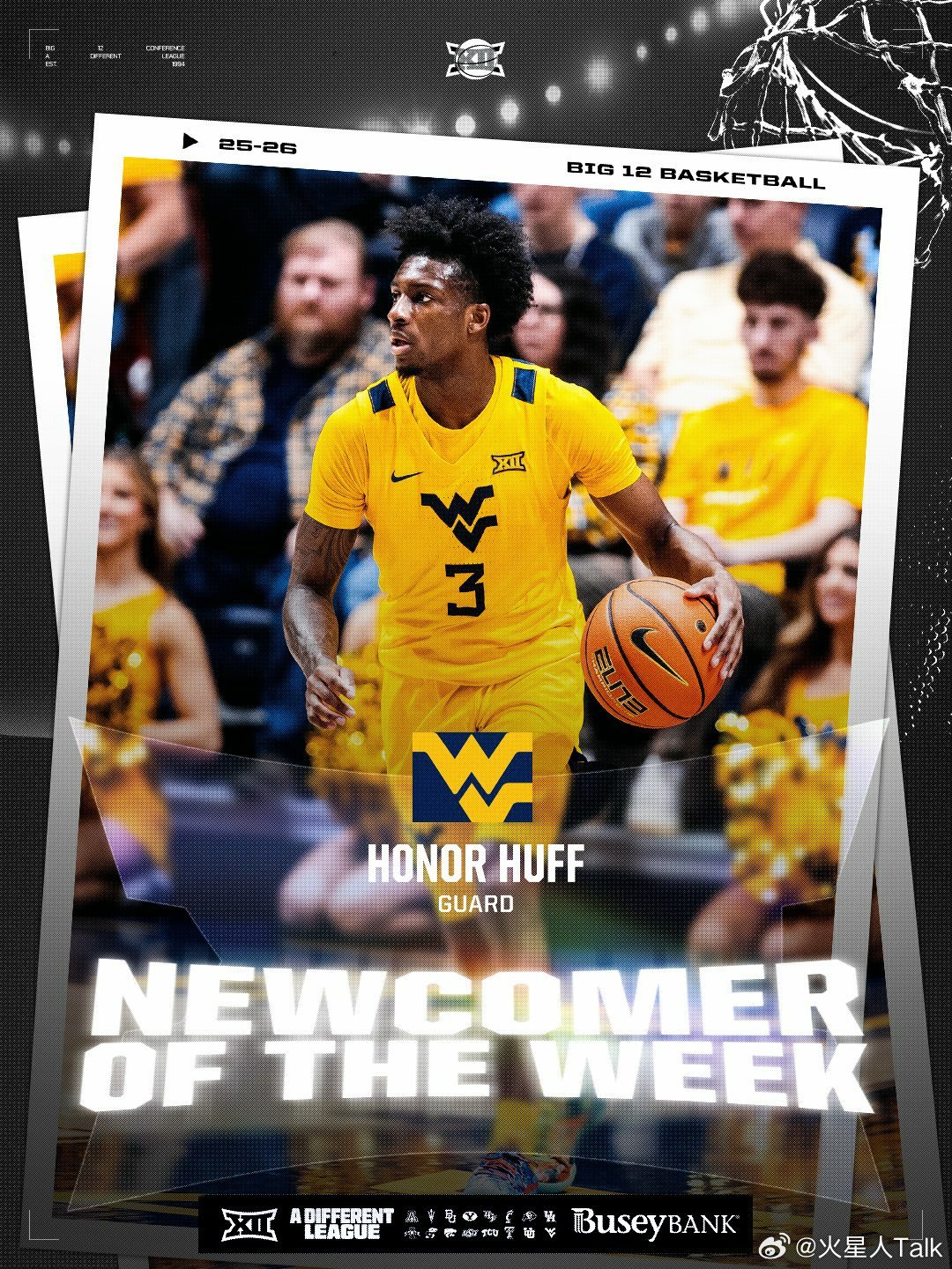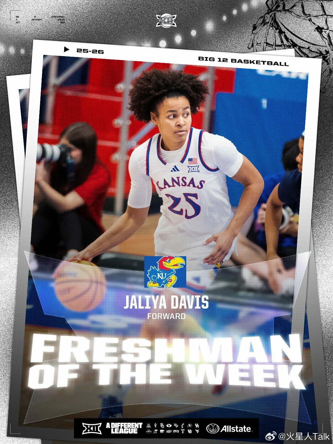 Big 12联盟第10周表现奖(2025-2026赛季)。 最佳球员:Richie Saunders,最佳新生:Honor Huff。 最佳球员:Bailey Maupin,最佳新生:Jaliya Davis。