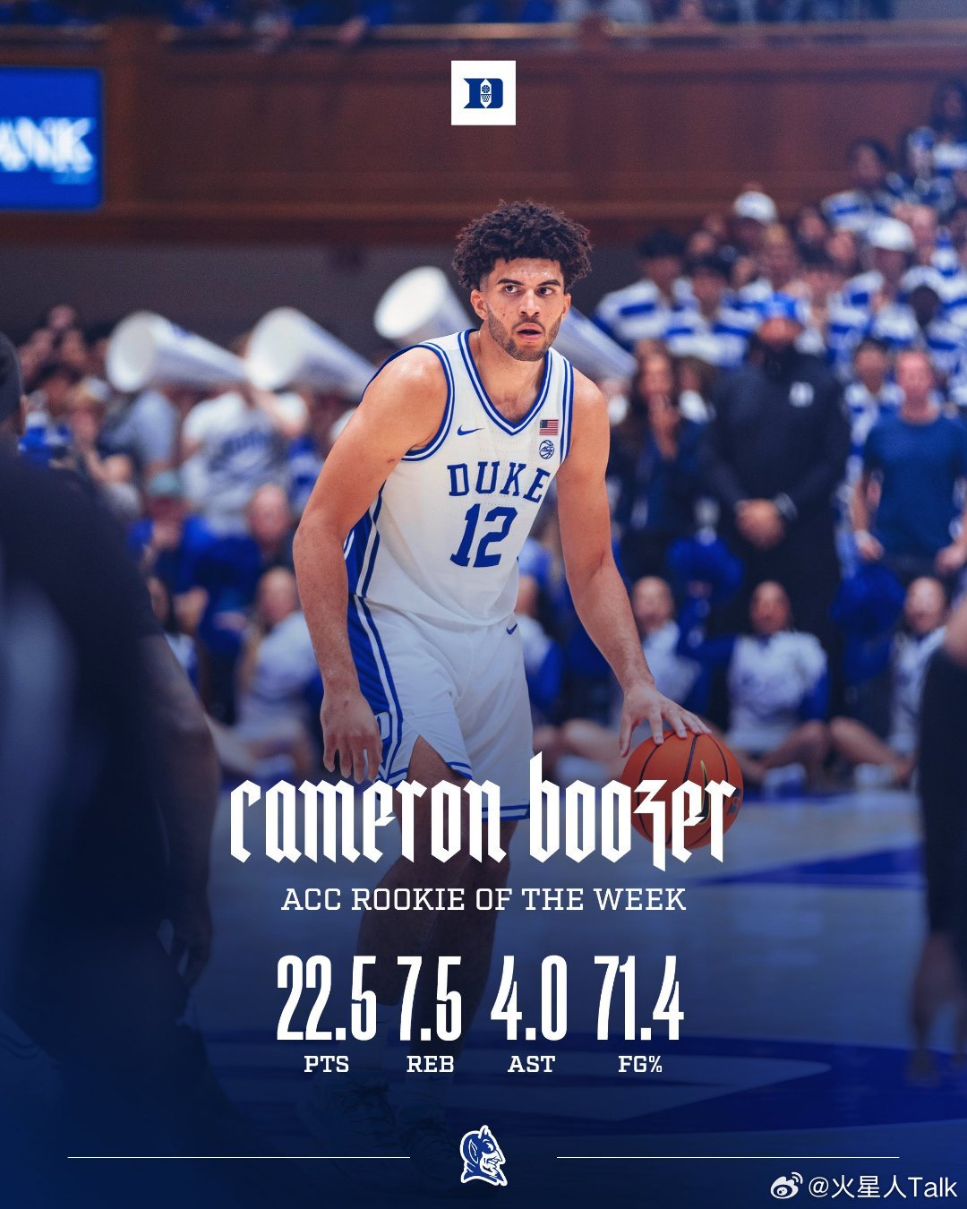 ACC联盟第10周表现奖(2025-2026赛季)。 最佳球员:Tre Donaldson,最佳新生:Cameron Boozer。 最佳球员:Hannah Hidalgo,最佳新生: Arianna Roberson。