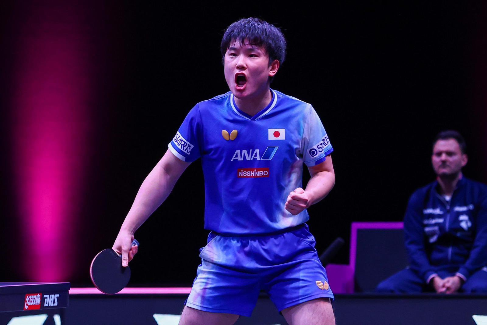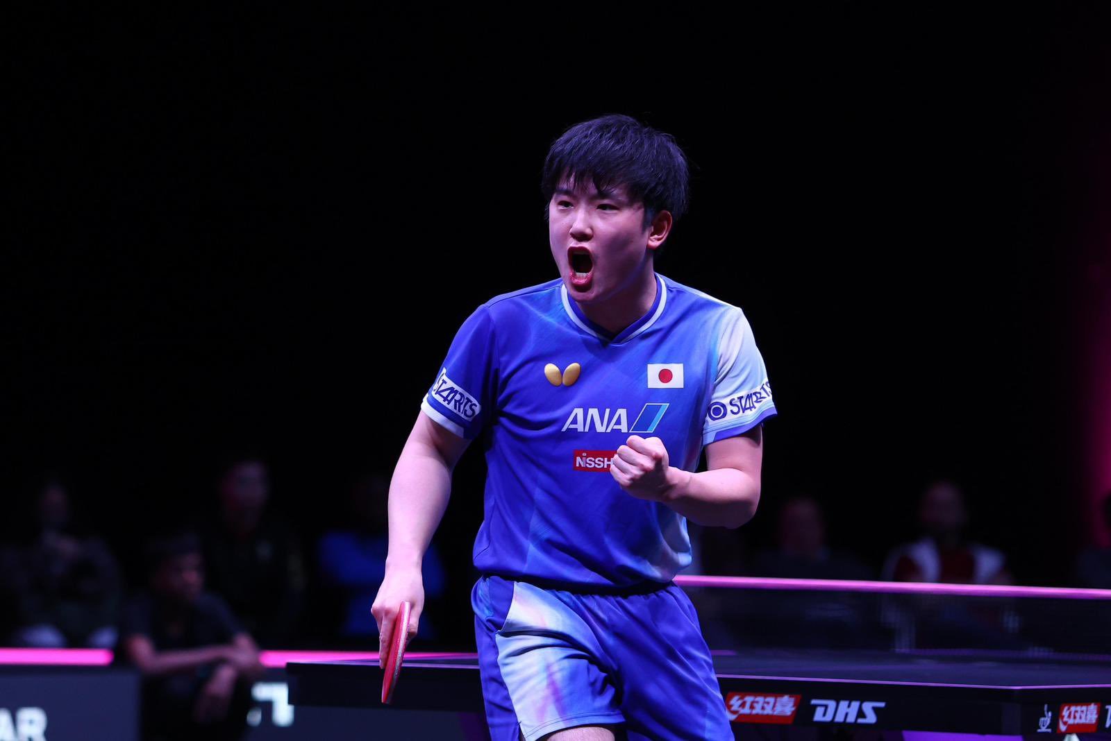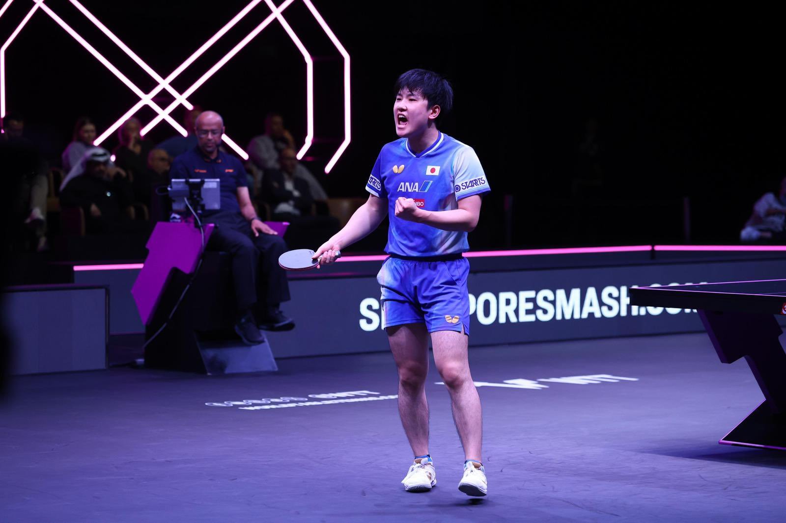 张本智和张本智和wtt多哈冠军赛2026 20260111日本名将张本智和的喜悦时刻——在男单四分之一决赛中以 4比2 战胜法国选手费利克斯·勒布伦,成功晋级男单半决赛🏓💯👌cr. qtta