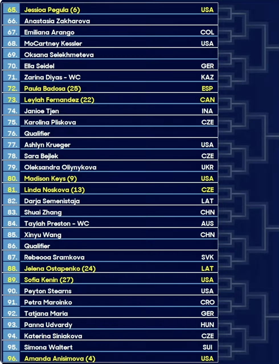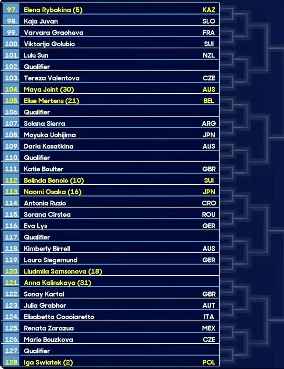 澳网抽签仪式 女单正赛签表出来啦!眼睛已经花了,努力找中国选手。张帅首轮对阵外卡选手佩雷斯顿,次轮对位13号种子诺斯科娃;王欣瑜对阵资格赛选手,次轮对位24号种子奥斯塔彭科。两人签运还可以哦澳网2026