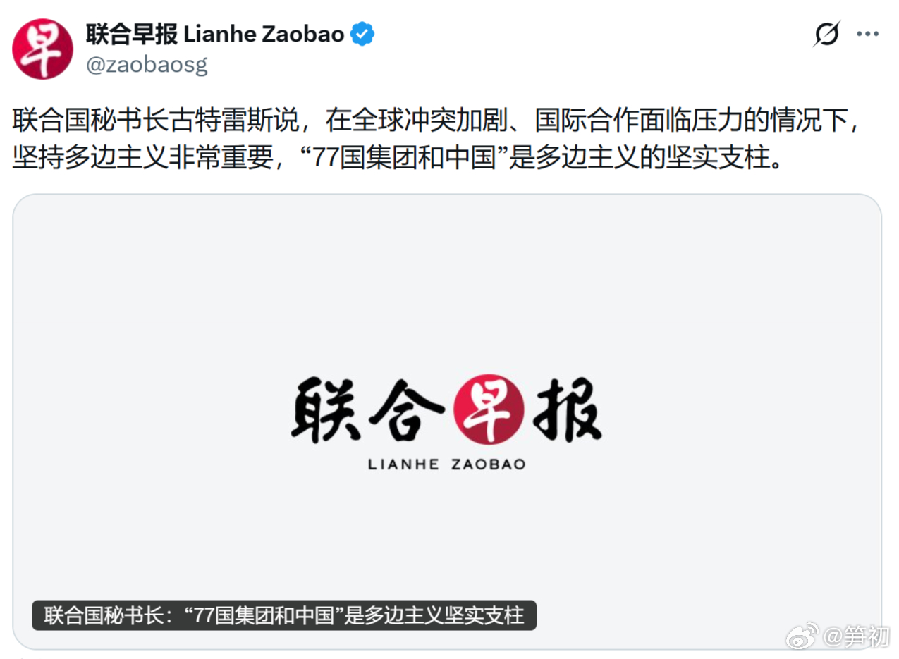联合国秘书长古特雷斯说,在全球冲突加剧、国际合作面临压力的情况下,坚持多边主义非常重要,“77国集团和中国”是多边主义的坚实支柱。是啊,美国退出了好多联合国组织,全指着中国带头交联合国会费呢。