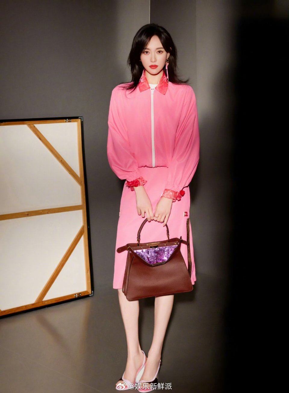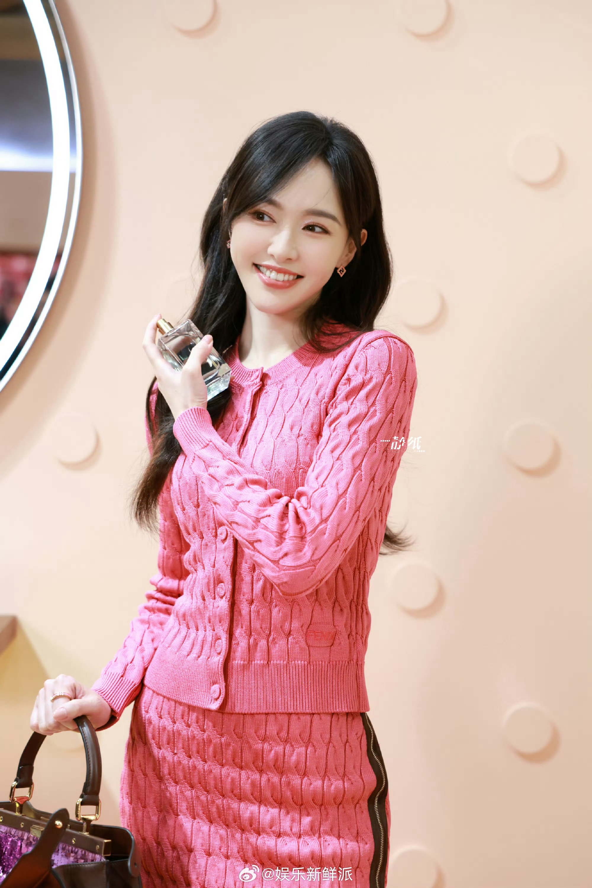派酱安利 唐嫣粉裙糖糖身穿粉色针织裙身材好到爆,状态超好,每一帧都甜到犯规
