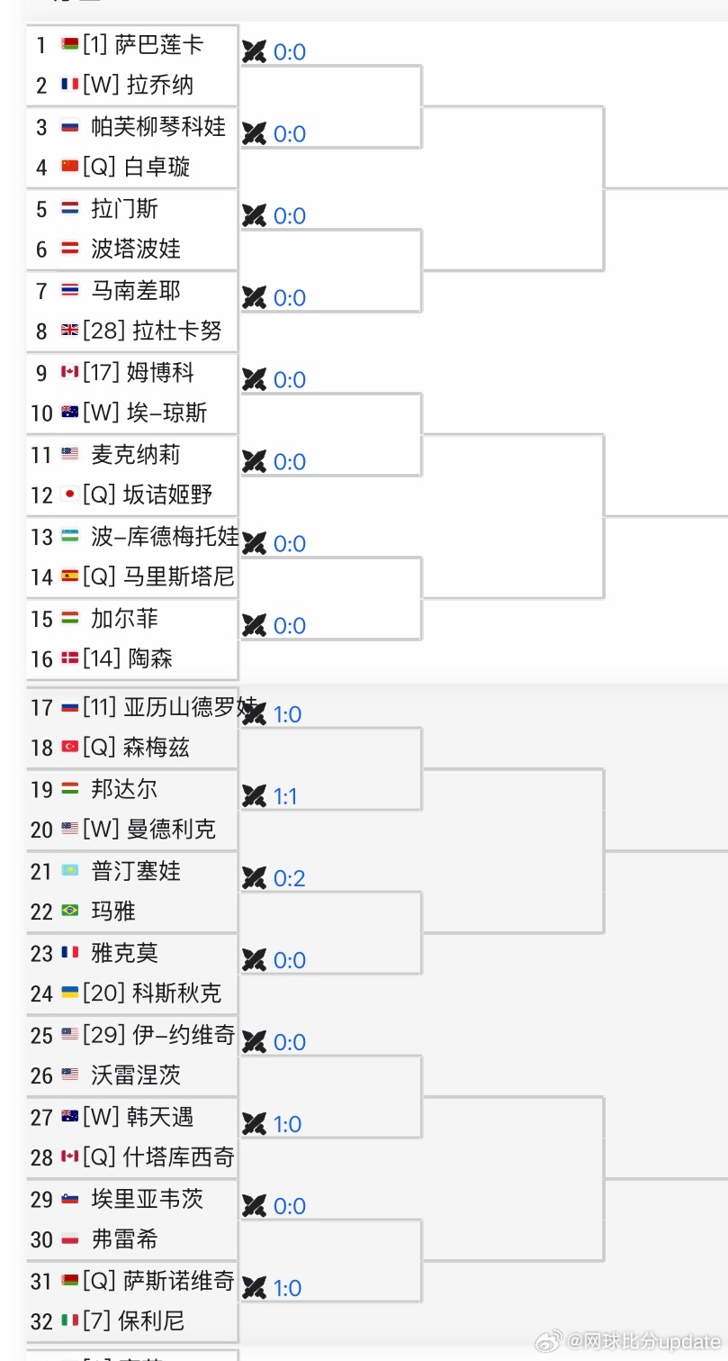 澳网2026 女单资格赛选手落位[Q]🇨🇳袁悦 vs 斯瓦泰克🇵🇱[Q]🇨🇳白卓璇 vs帕芙柳琴科娃🇷🇺(R2 🇧🇾萨巴伦卡)🇨🇳王欣瑜vs卡利尼娜🇺🇦[Q]这。。。。 大家觉得怎么样这很澳网
