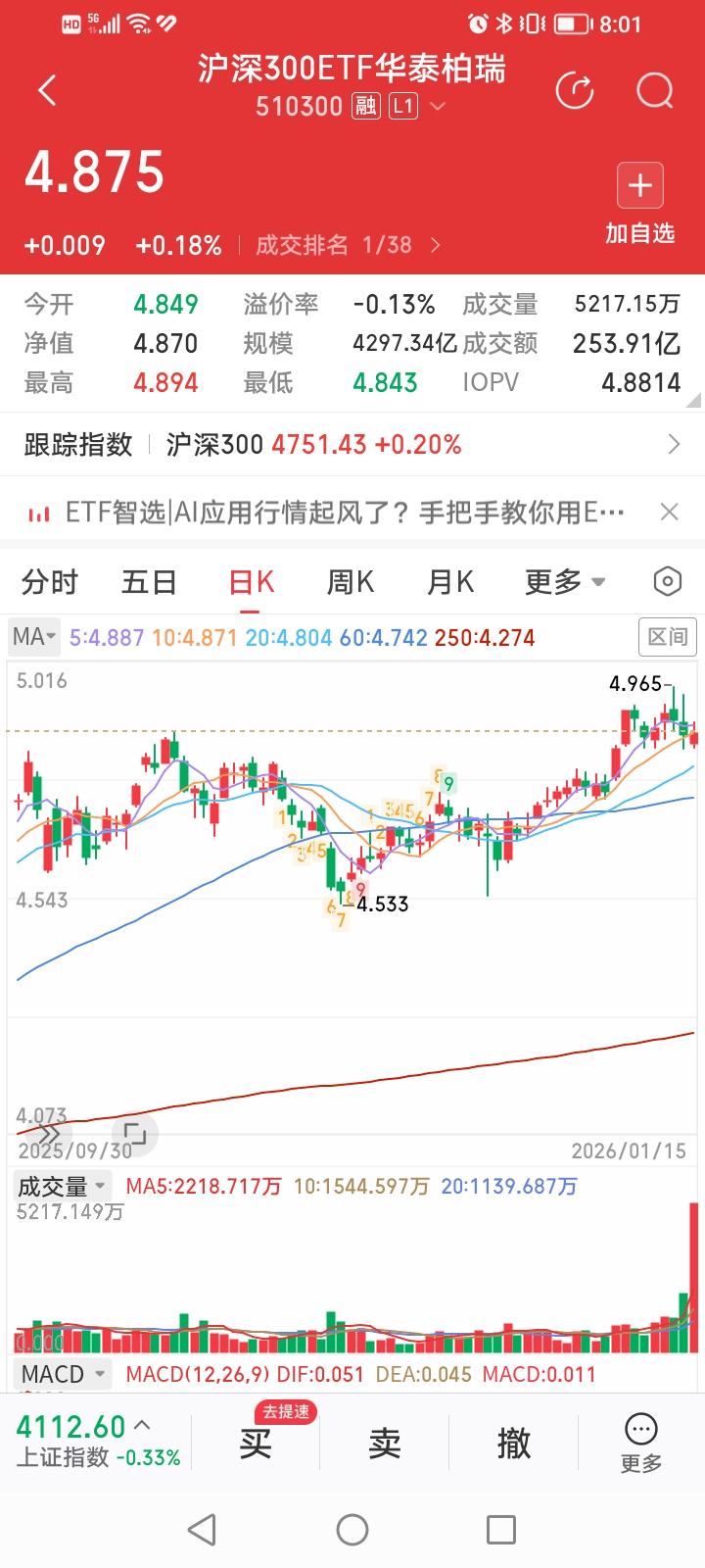 有点蹊跷。今天沪深两市总成交金额为2.9万亿元,比昨天的3.9万亿元少了近一万亿元。 但作为股市定海神针的沪深300ETF华泰柏瑞(510300)和沪深300ETF华夏(510330)两大ETF基金反而成交金额比往常放大了10倍。谁在大买?谁在大卖? 咱扒了一下这两大ETF以前的K线图,每当它们放出巨量后,随之而来的就是一段震荡攀升行情。这次不知道会不会例外?