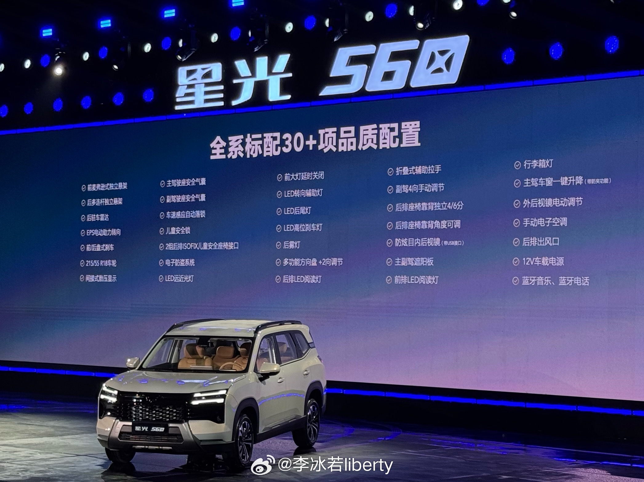 6w级确实实至名归了星光560正式上市看下配置4款车型 6.28-9.88w顶配不超10w另外还有一车三动力所有动力都有得选价格低但配置不低标配30+配置如果预算不高在意配置对动力有需求560这么看还挺香星光560 星光560上市惊喜价59800起
