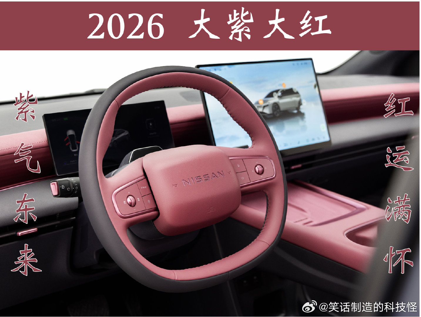 蓝盈莹开N6红运当头你告诉我这内饰颜色名字是“大紫大红”?这多少有点颠覆我对大紫大红的认知了!很典雅啊,丝毫不落俗套,而且确实和蓝盈莹气质很搭,大气,漂亮,稳重,又透着一丝“不甘平凡”的底气和勇气,和日产N6的气质有点像,年轻家庭用户估计很难不喜欢。新年开大紫大红大N6 东风日产N6(