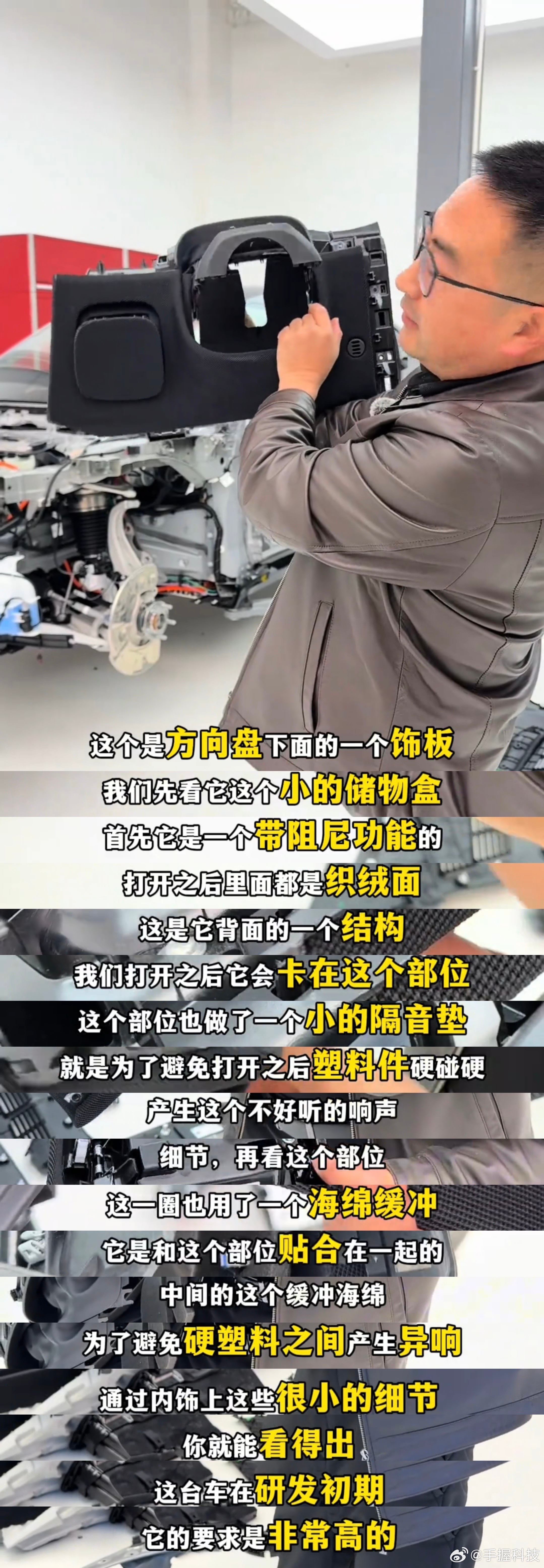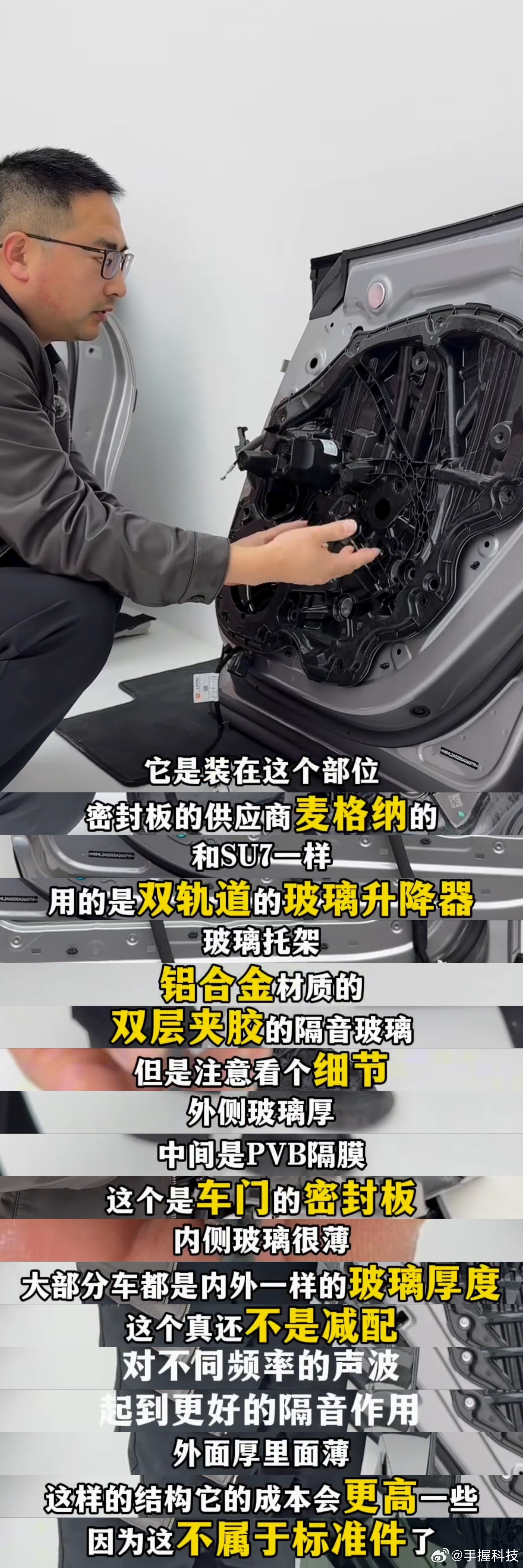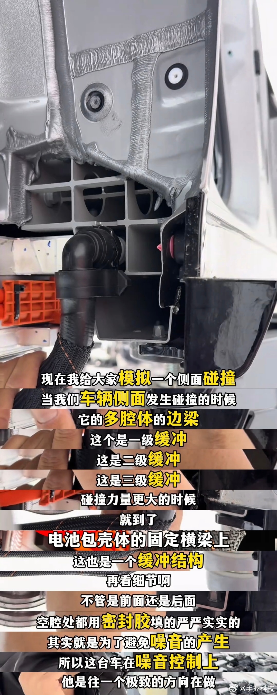 看完老章拆小米YU7的视频,总算懂这台车为啥能连续5个月稳坐大中型SUV销冠了,看得见和看不见的细节里都是真材实料。老章说它“把噪音控制往变态方向做”,这话可是一点都不夸张的。外厚内薄的双层夹胶玻璃、机盖到后备箱无处不在的隔音棉,连鼓风机、B柱出风管都裹得严严实实,甚至用堪比“汽车版上海中心钟摆”的尾盖阻尼器解决低频压耳问题。随便堆配置可做不到这种对静谧性的极致追求。当然让人安心的还是安全细节的较真。40厘米长的吸能盒能渐进式吸能,370+的前刹车盘直接碾压百万级燃油车,侧气帘比人还高还用上了熔焊工艺,连小电瓶都配了铝合金壳体、高压线插头藏在尾部做好防护。电动车用户最慌的电池安全、碰撞防护,它全想到了前头。小米单月3.9万的销量,对应的是从静音到安全、从大部件到小细节的实打实投入。用户要的舒适和安心,小米没有减配,全用真材实料给满了。讲真,能长期霸榜的爆款,那都是妥妥的靠实力说话的,小米YU7这含金量确实是足。
